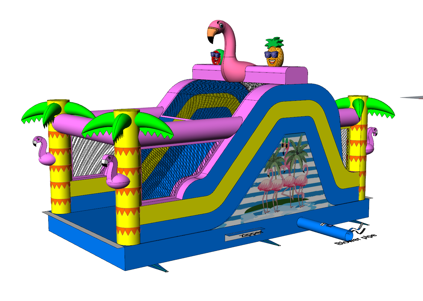 Roze en flamingo’s? Yes, dit flamingo springkasteel is de blikvanger op jouw hip feestje.Het springkasteel is veelgevraagd om echt in de vrolijke beach sfeer sfeer te komen. Met flamingo's breng je in een handomdraai exotische sferen naar je tuin met een roze toets!