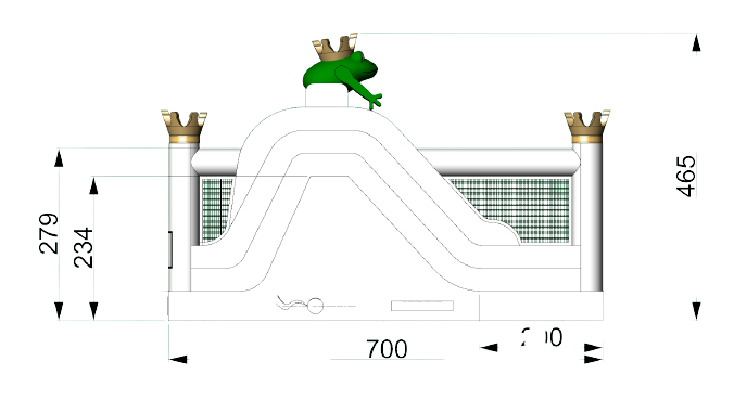 | Opmerking installatie | Voorzie steeds 1 meter vrije ruimte rondom het springkasteel om schade te vermijden. |