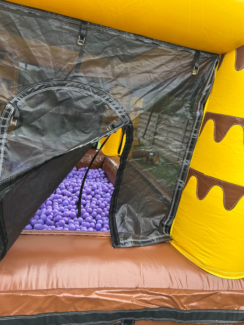 - In 2 zijwanden een deur met velcro om in het ballenbad te stappen