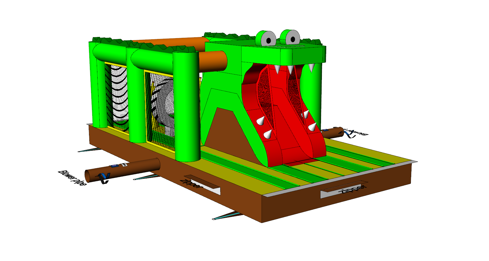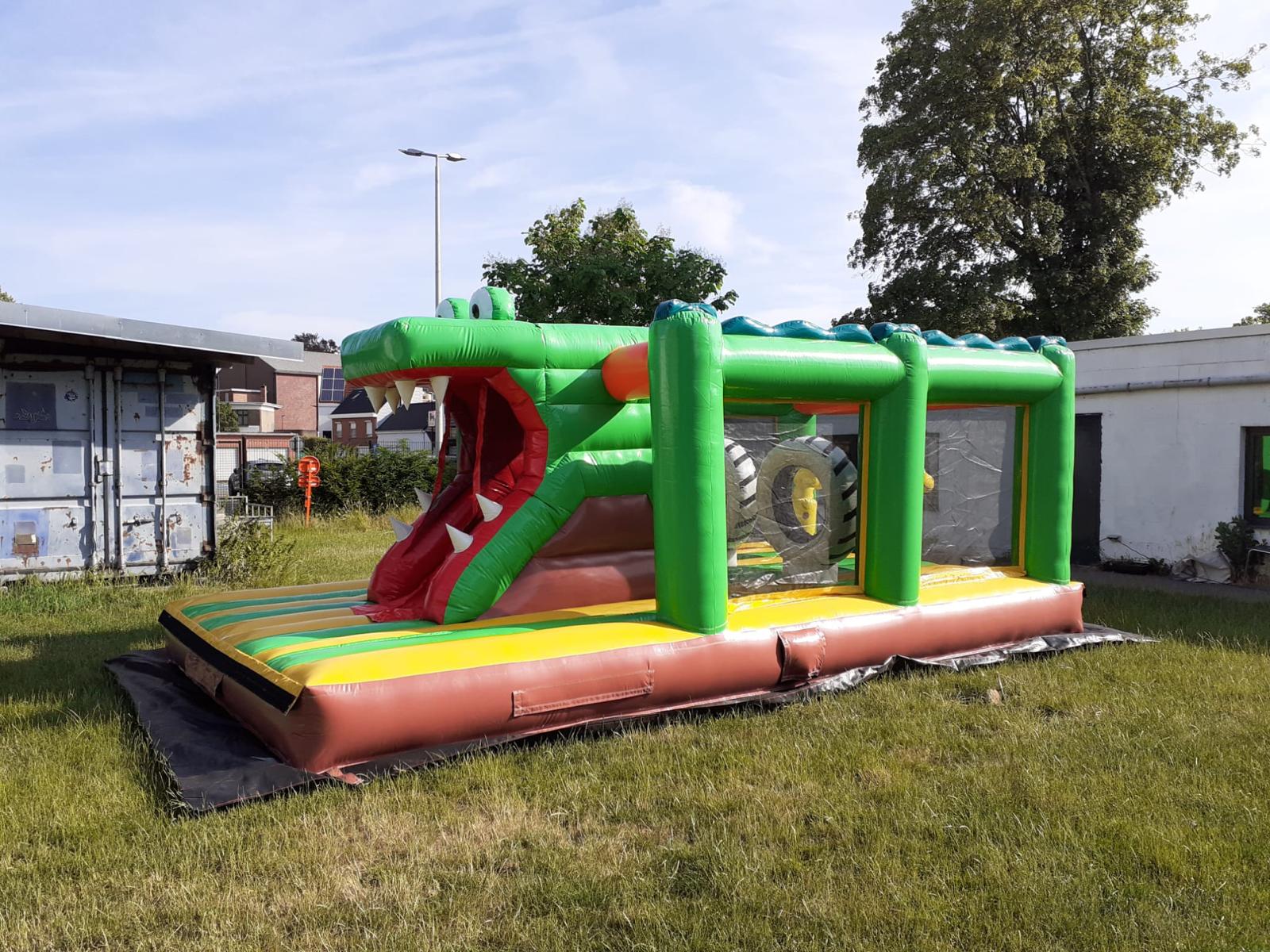 Met zijn 7m lang is het een springkasteel waar je langs 2 kanten kan instappen. Aan 1 kant heb je leuke en originele obstakels in thema, aan de andere kant heb je een glijbaan. Voor ieder wat wils en gegarandeerd uren speelplezier!