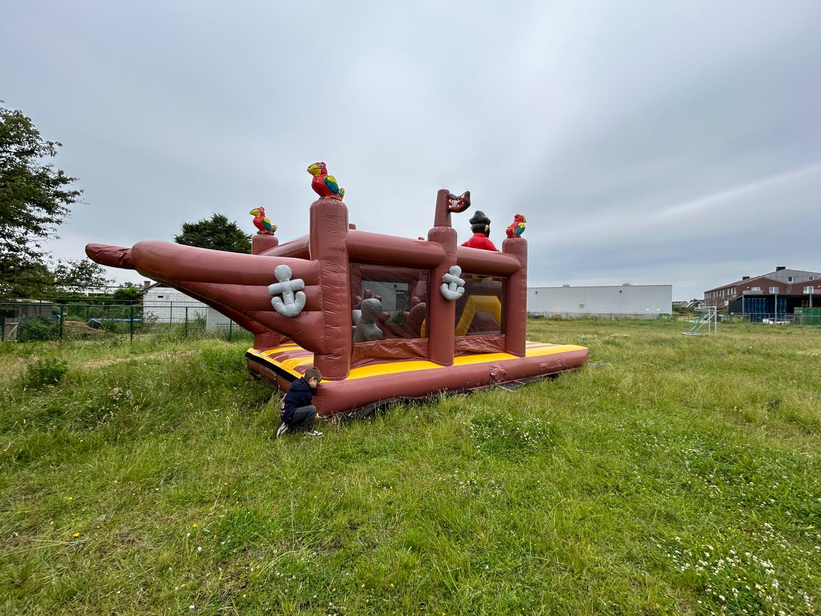 Met zijn 7m lang is het een springkasteel waar je langs 2 kanten kan instappen. Aan 1 kant heb je leuke en originele obstakels in thema, aan de andere kant heb je een glijbaan. Voor ieder wat wils en gegarandeerd uren speelplezier!
