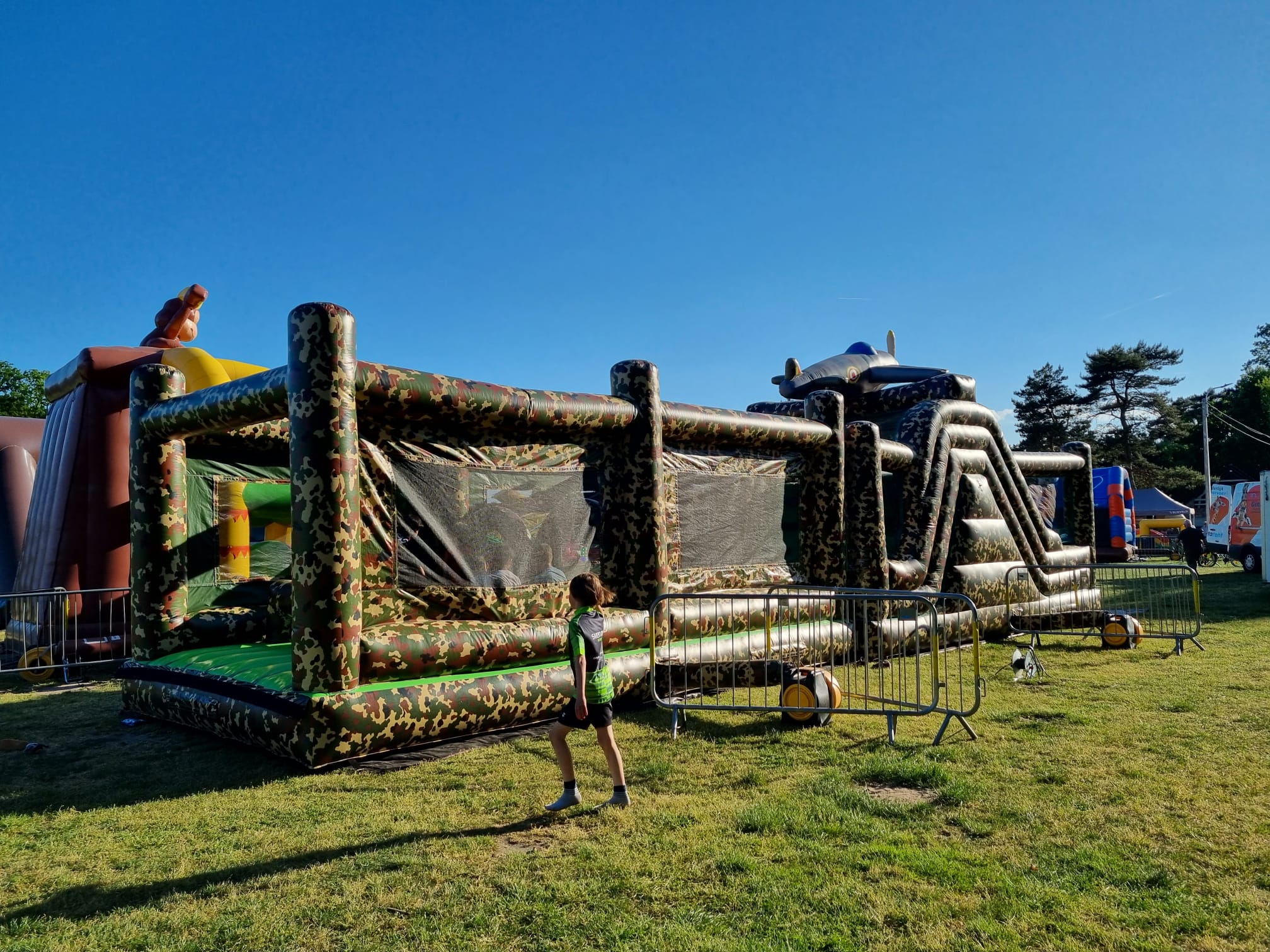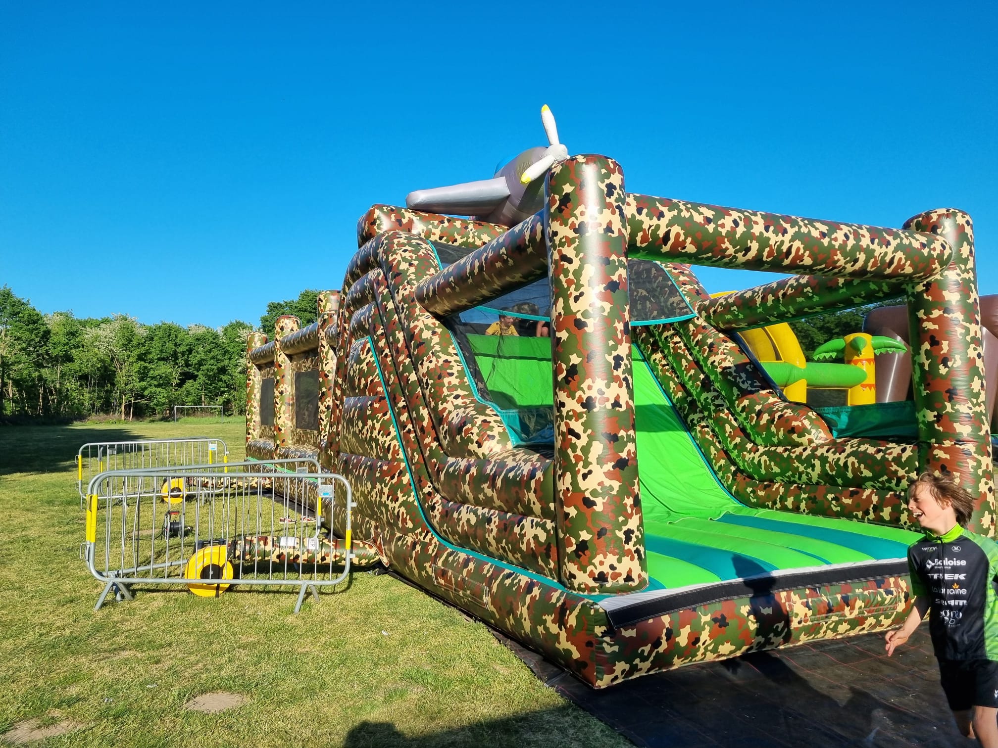 Dit mooie overdekte Army springkasteel is ideaal voor springplezier op jouw feest of evenement. Het springkasteel is veelgevraagd om echt in de legersfeer te komen. In ware camouflagestijl zoals het hoort is onze aanbod aan legerspringkastelen opgebouwd. Het leger is voor vele kleine jongens en ook meisjes een droom. Zij zullen dan ook fan zijn van dit knap uitgewerkt thema. Als een echte soldaat spring en tuimel je door de hindernissen en kijken we vol bewondering naar de tank of vliegtuig!