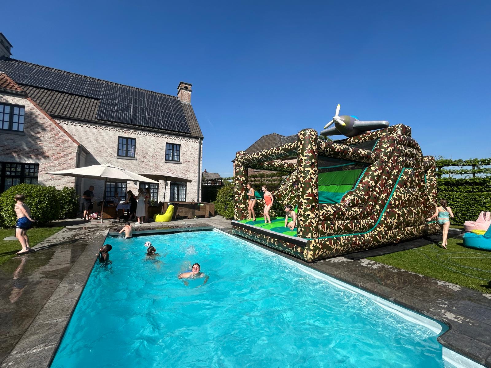 Met aan de ene kant een grote glijbaan en de andere kant 7 meter lang aan obstakels en springoppervlak is het Fun met de grote F.