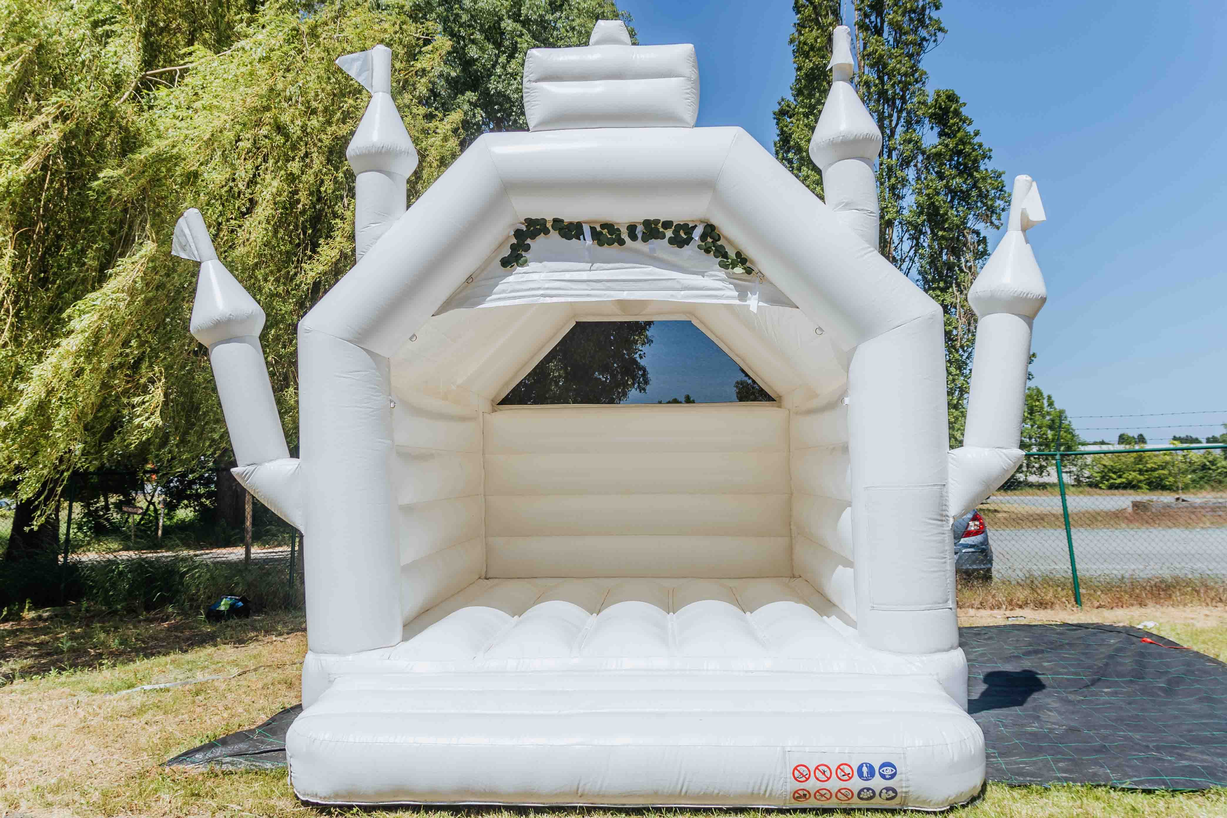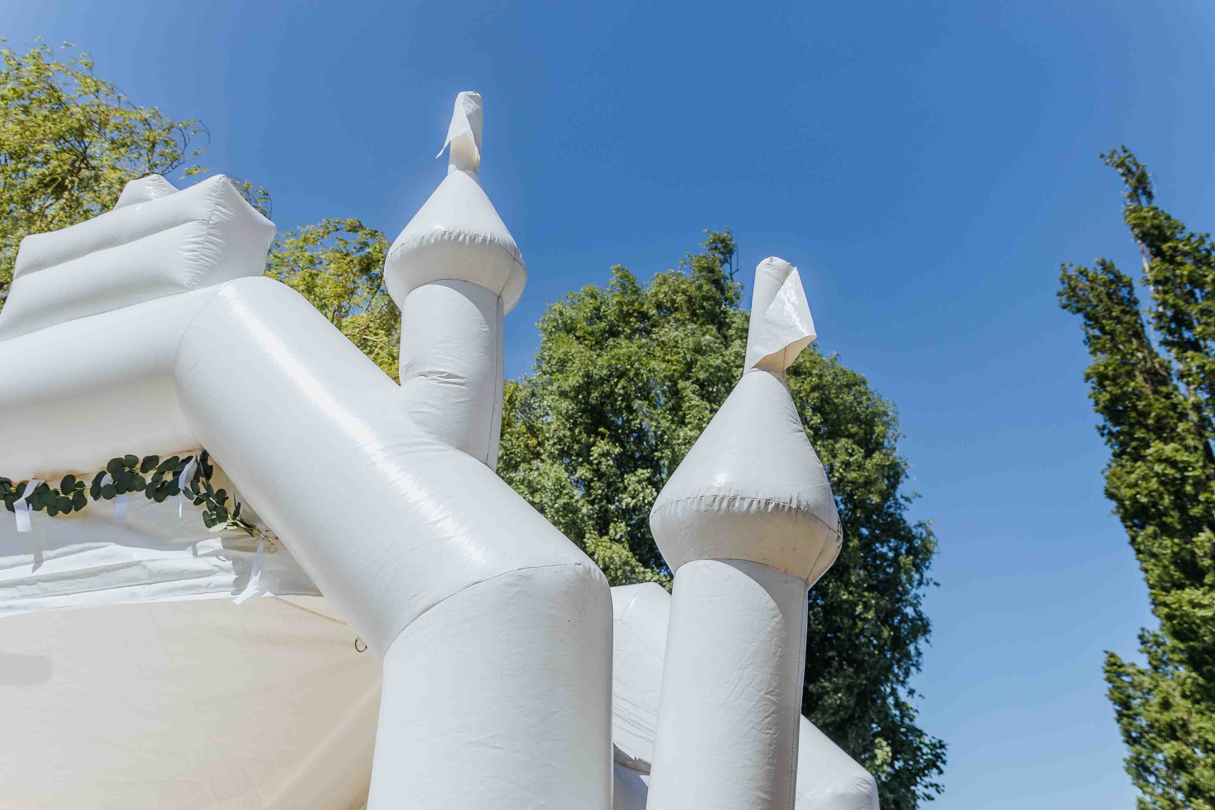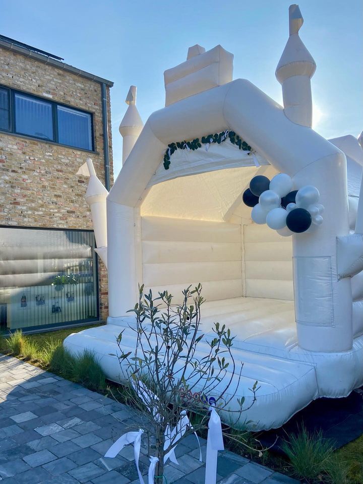 Als je op zoek bent naar een stijlvol en ‘leuk’ extraatje voor jouw tuinfeest of trouwfeest kan dit dan in een springkasteel? Natuurlijk! Eventa Rent verhuurt dit fantastisch wit springkasteel voor jong en oud! Dit springkussen is een ware attractie en behoort tot de meest moderne generatie springkastelen! Verschillende kinderen kunnen hierin springen samen met volwassenen. Niet alleen voor jouw tuinfeest is dit een must have maar ook voor je huwelijksfeest of bohemien thema feest. Met wat extra decoratie tover je dit kasteel namelijk om tot een heus wit themaspringkasteel.