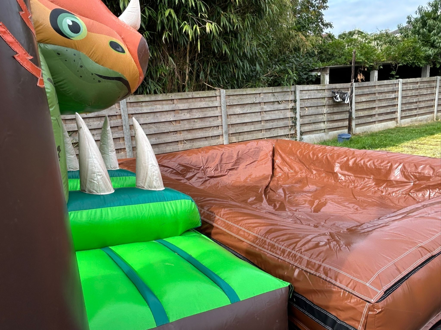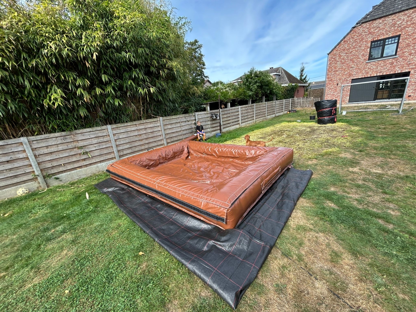 Dit zwembad is een 30-tal centimeter diep. Zodra er water in zit moet de blower ook aanblijven, anders gaan de wanden naar beneden. Het is dus echt ideaal voor uren waterplezier!