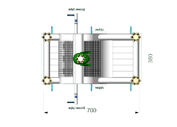 | Inbegrepen onderdelen | Grondzeil (incl. zwarte spanriem 1m) - 4 verankeringspinnen luchtkussen - Luchtkussen incl. transportzak & 2 spanriemen - Blower 1100 watt |