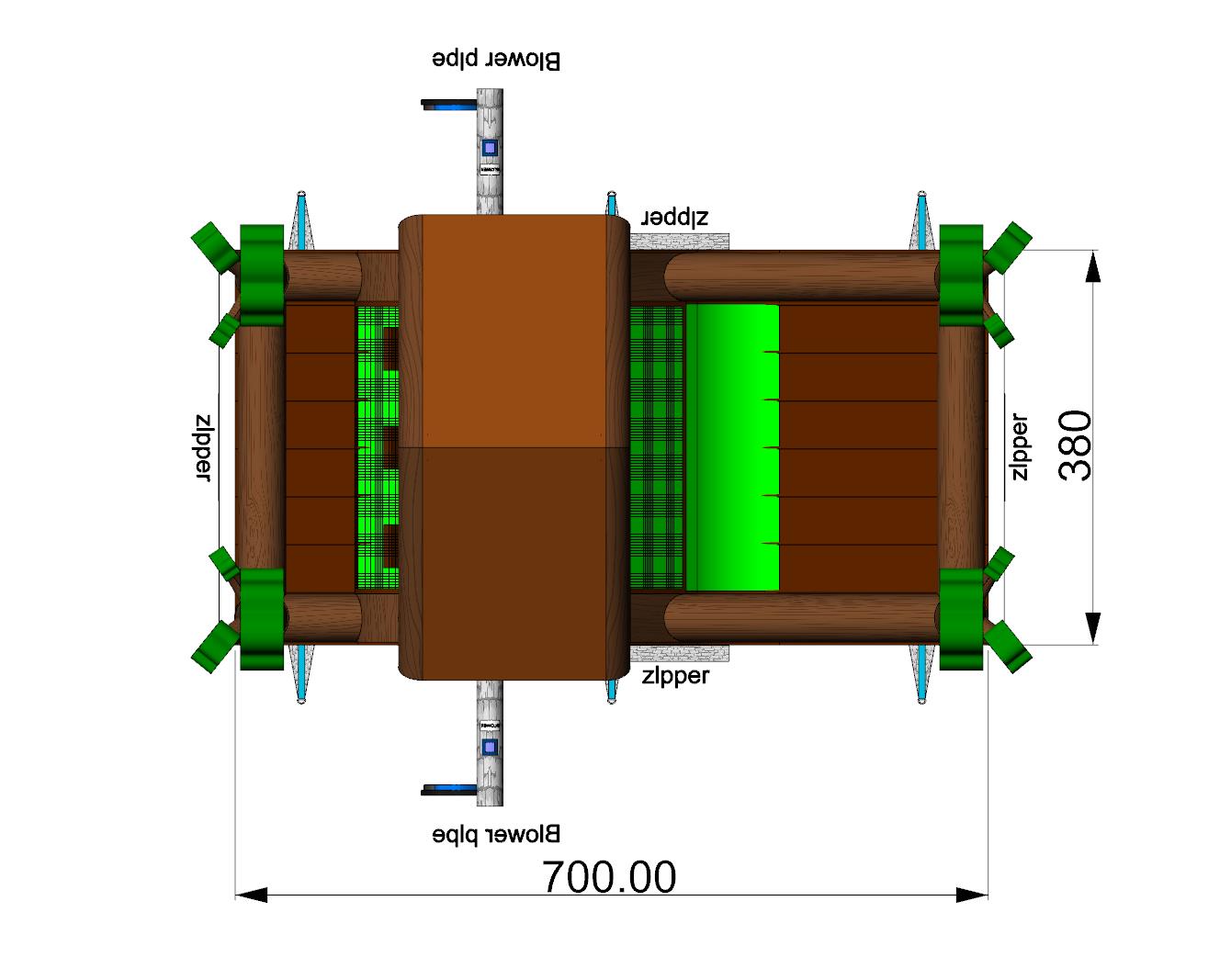 | Inbegrepen onderdelen | Grondzeil (incl. zwarte spanriem 1m) - 4 verankeringspinnen luchtkussen - Luchtkussen incl. transportzak & 2 spanriemen - Blower 1100 watt |