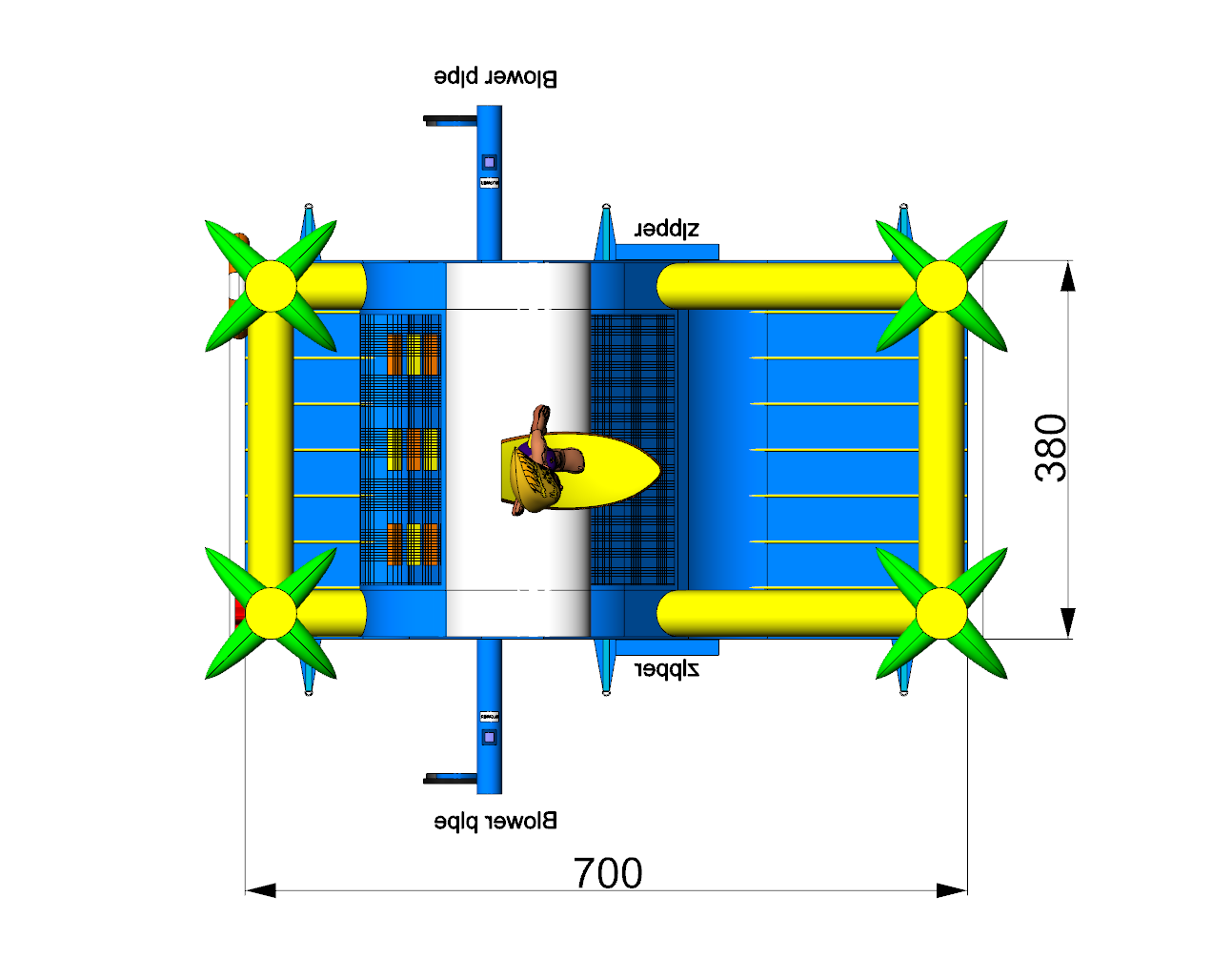 | Opmerking installatie | Voorzie steeds 1 meter vrije ruimte rondom het springkasteel om schade te vermijden. |