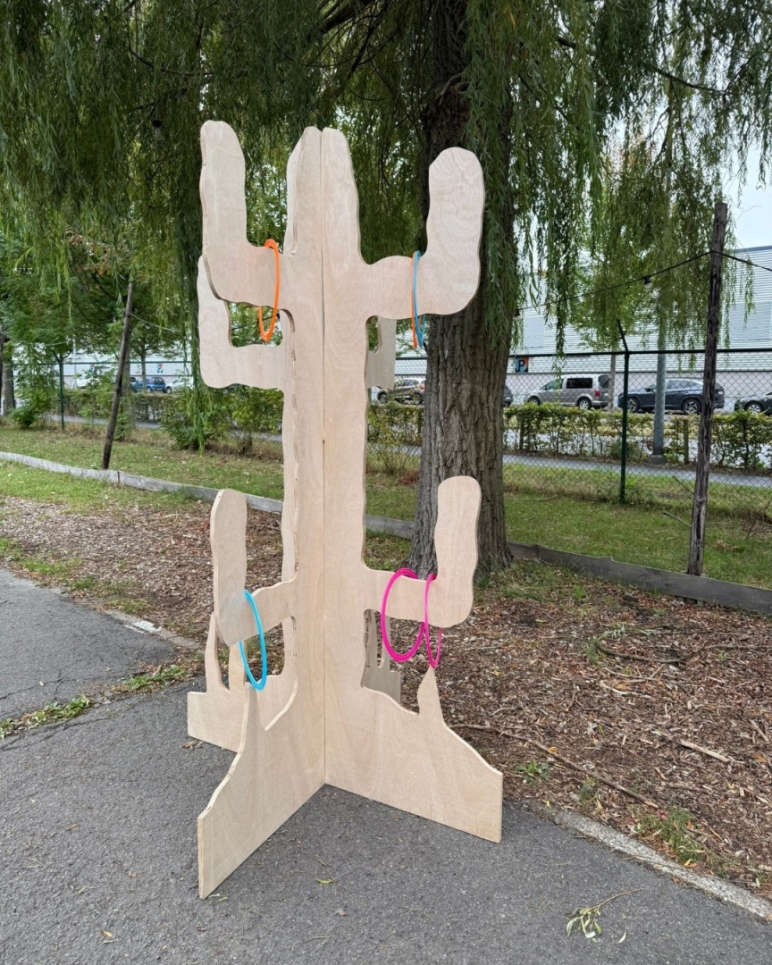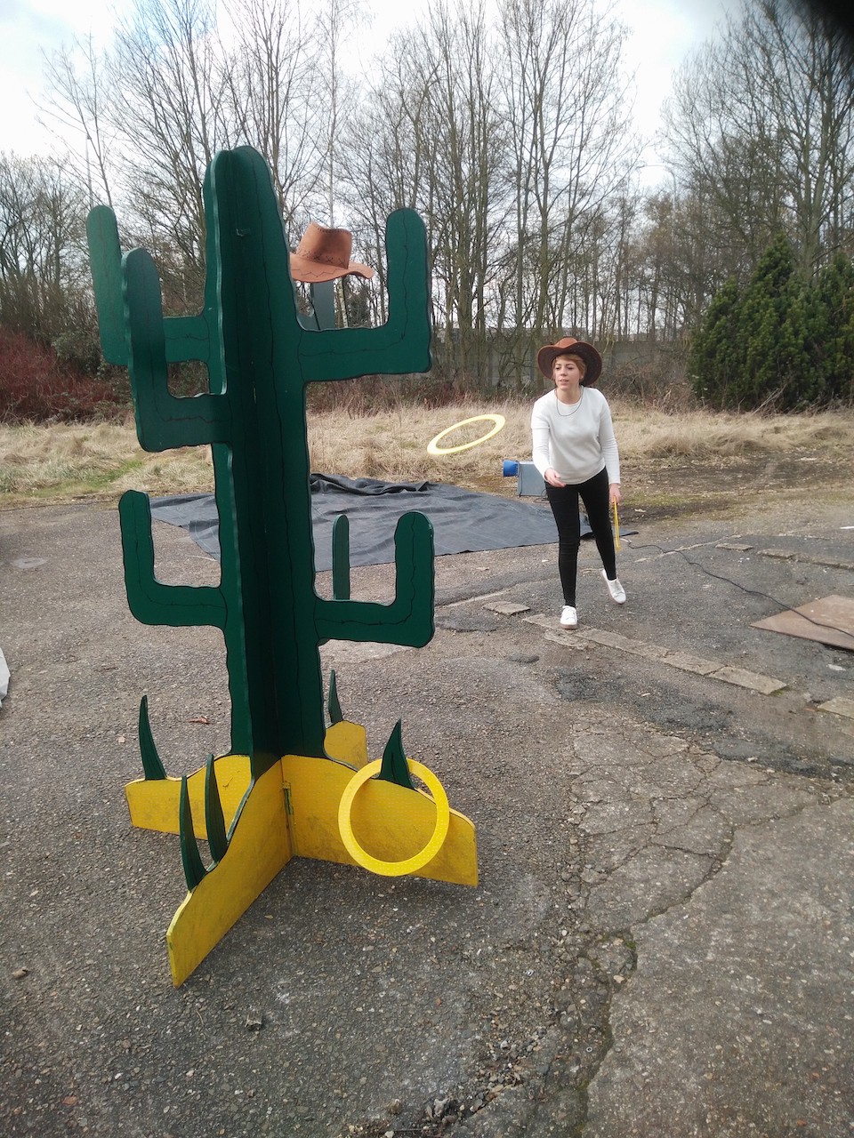 Ons mooi ringwerpspel in western-thema is een heel leuke blikvanger met zijn 2 meter hoog en nog leuker spel om zelf te spelen! Perfect voor elk thema feest voor jong en oud. Dit spel zorgt niet enkel voor plezier maar kleed jouw ruimte ook meteen in. Ons ringwerpspel wordt geleverd met 6 ringen.