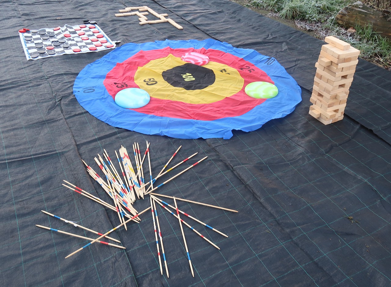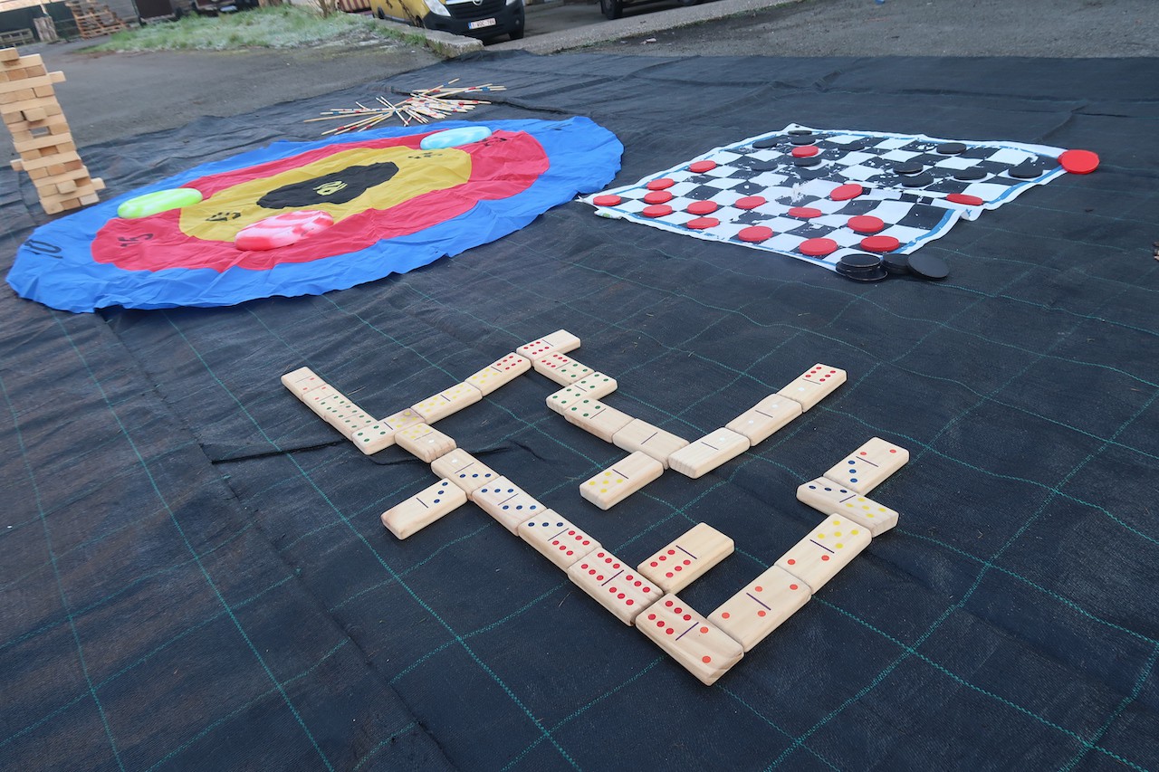 Huur nu een origineel spel waarbij kinderen en ouderen samen kunnen spelen op je feest! Dit aan de fantastische afhaalprijs! Mikado bestaat uit 40 stokjes van +- 40 cm, de darts uit 3 frisbees en dartsbord van 195cm, domino bestaat uit 55 blokjes van 10x5cm, jenga uit 56 blokjes van 17,5x5x3cm en damspel bestaat uit dambord van 85x85cm en 2x20 damschijven. Deze spelletjes kunnen zowel binnen als buiten gespeeld worden. Ideaal voor verjaardagsfeesten, communiefeesten en lentefeesten.
