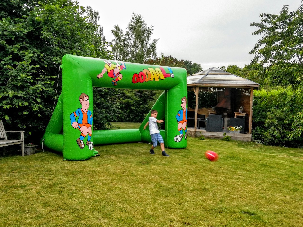 Huur deze leuke opblaasbare voetbalgoal op jouw feest! Een echte topper! Ideaal voor de voetbalfans die op hun verjaardagsfeest hun voetbalskills willen oefenen met vrienden en familie maar ook heel leuk voor sportdagen, schoolfeesten, benefiets,....