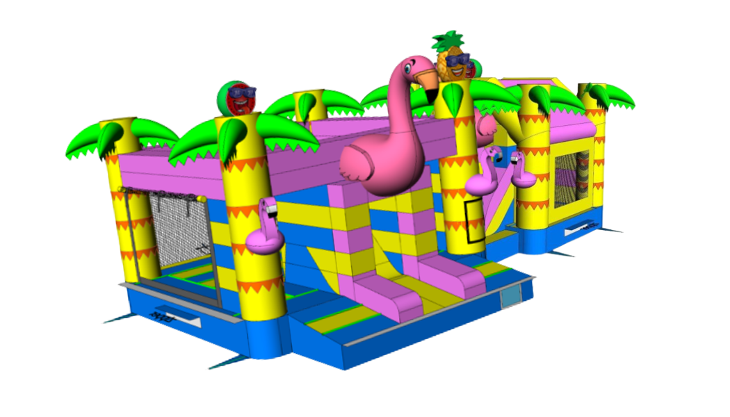 Roze en flamingo’s? Yes, dit flamingo springkasteel is de blikvanger op jouw hip feestje.Het springkasteel is veelgevraagd om echt in de vrolijke beach sfeer sfeer te komen. Met flamingo's breng je in een handomdraai exotische sferen naar je tuin met een roze toets!
