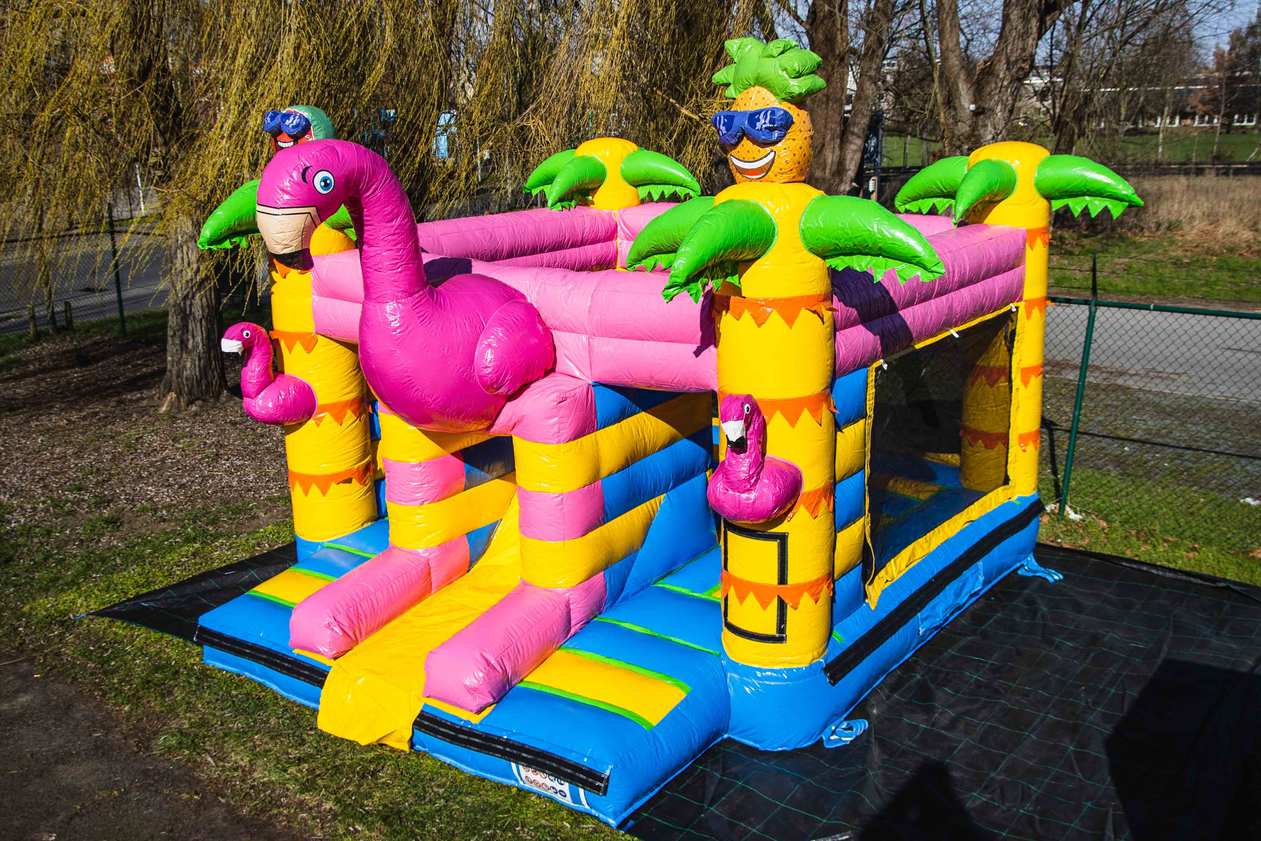 Roze en flamingo’s? Yes, dit flamingo springkasteel is de blikvanger op jouw hip feestje.Het springkasteel is veelgevraagd om echt in de vrolijke beach sfeer sfeer te komen. Met flamingo's breng je in een handomdraai exotische sferen naar je tuin met een roze toets!