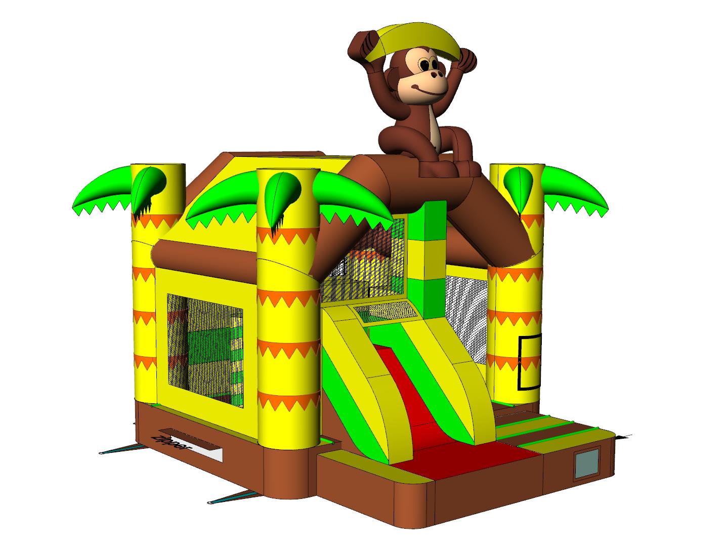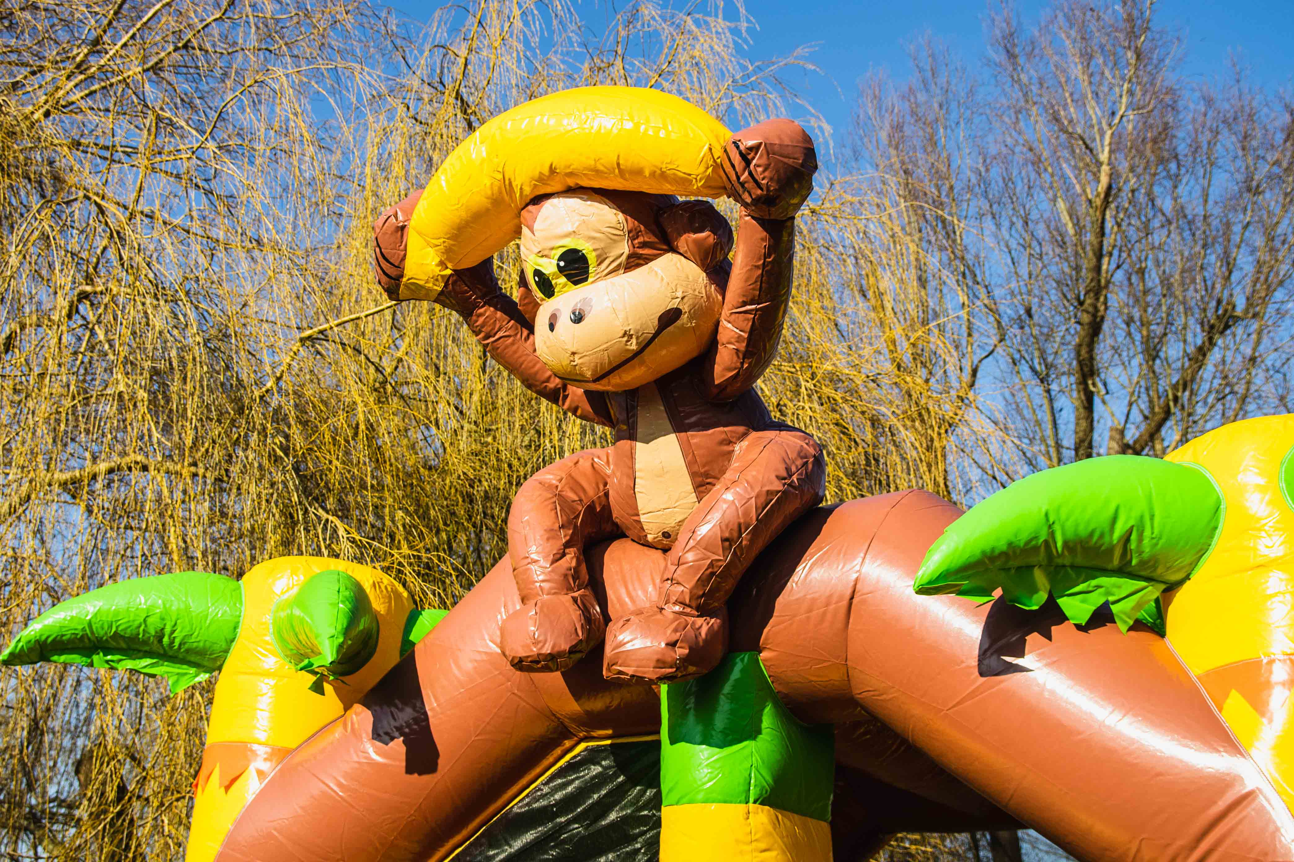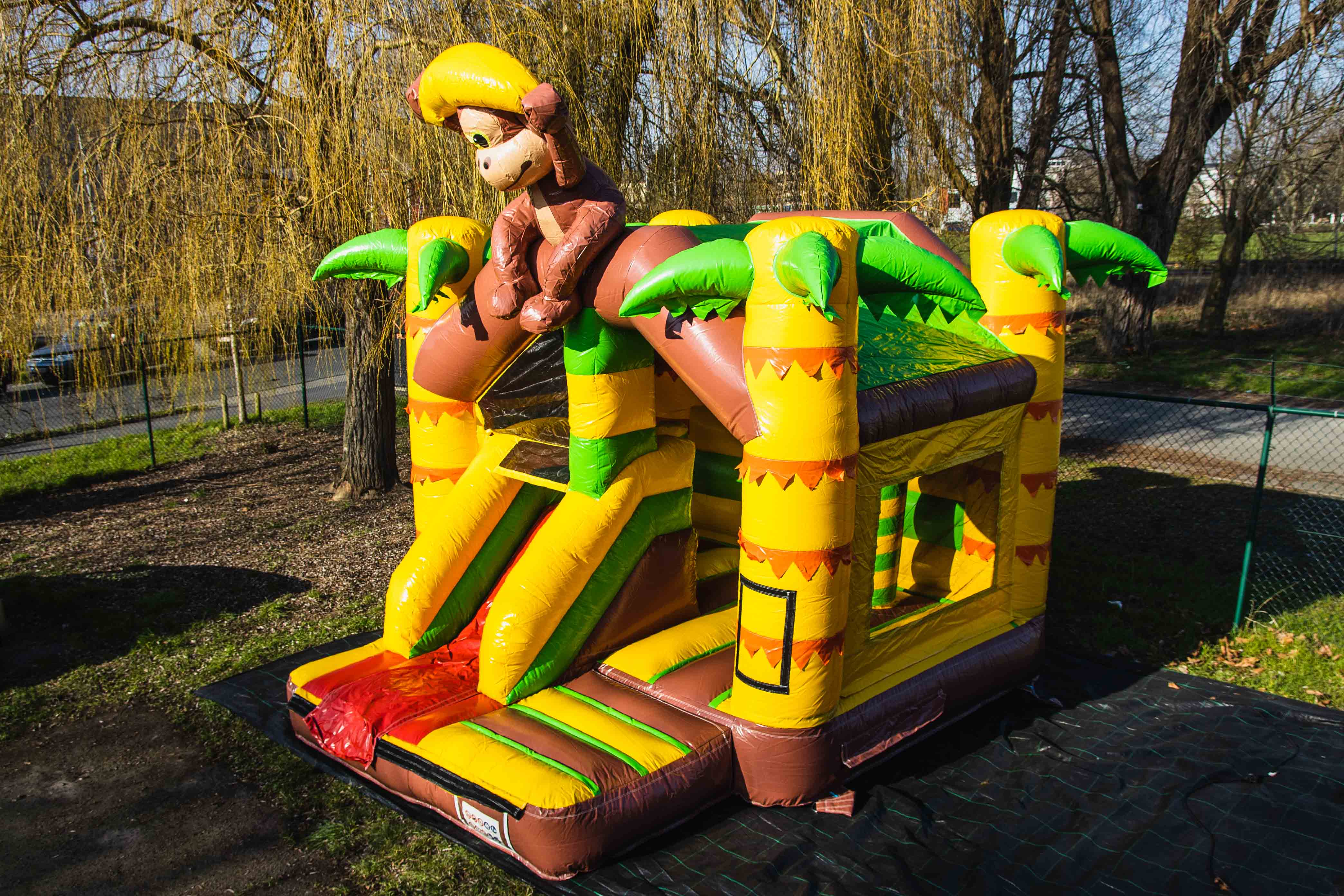 Dit mooie overdekte gorilla springkasteel is ideaal voor springplezier op jouw feest of evenement. Het springkasteel is veelgevraagd om echt in de jungle sfeer te komen. En laat ons eerlijk zijn, de aapjes is toch wel 1 van de favoriete dieren waar we naar toe snellen bij een bezoekje aan de dierentuin. Ook voor themafeesten en events in safari- of jungle-thema kan dit springkasteel inspiratie brengen voor de verdere inkleding!