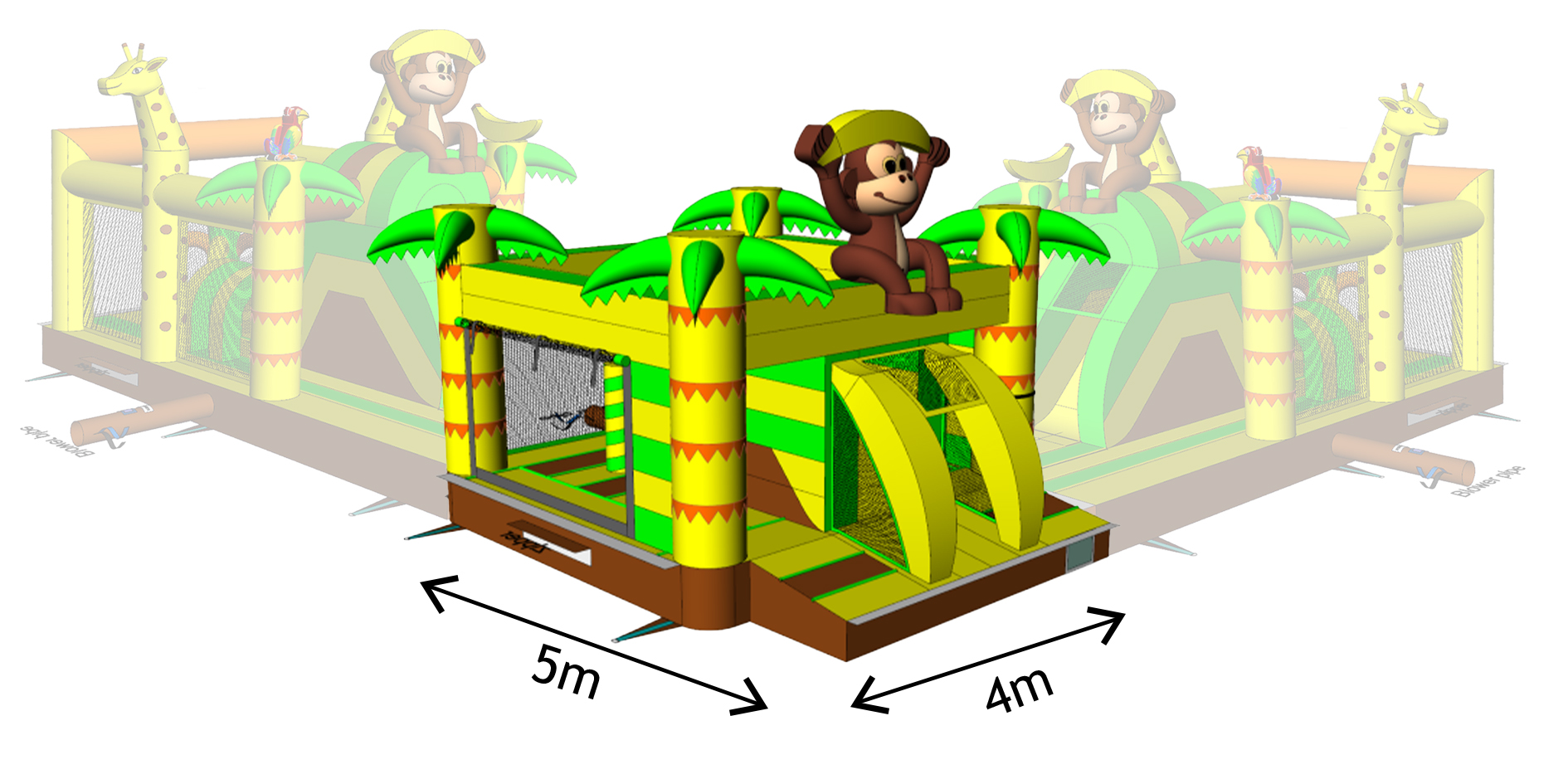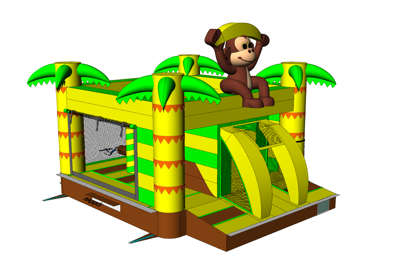 Dit mooie overdekte gorilla springkasteel is ideaal voor springplezier op jouw feest of evenement. Het springkasteel is veelgevraagd om echt in de jungle sfeer te komen. En laat ons eerlijk zijn, de aapjes is toch wel 1 van de favoriete dieren waar we naar toe snellen bij een bezoekje aan de dierentuin. Ook voor themafeesten en events in safari- of jungle-thema kan dit springkasteel inspiratie brengen voor de verdere inkleding!
