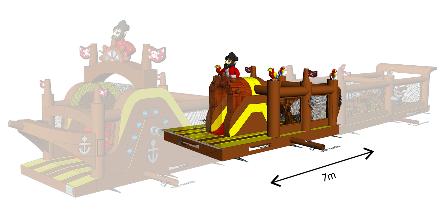 Met dit onderdeel van 7 meter heb je voor ieder wat wils, met een glijbaan, een springoppervlak en obstakels is dit een echte winner. Bovenop de glijbaan staat nog eens een super knappe blikvanger in thema!
