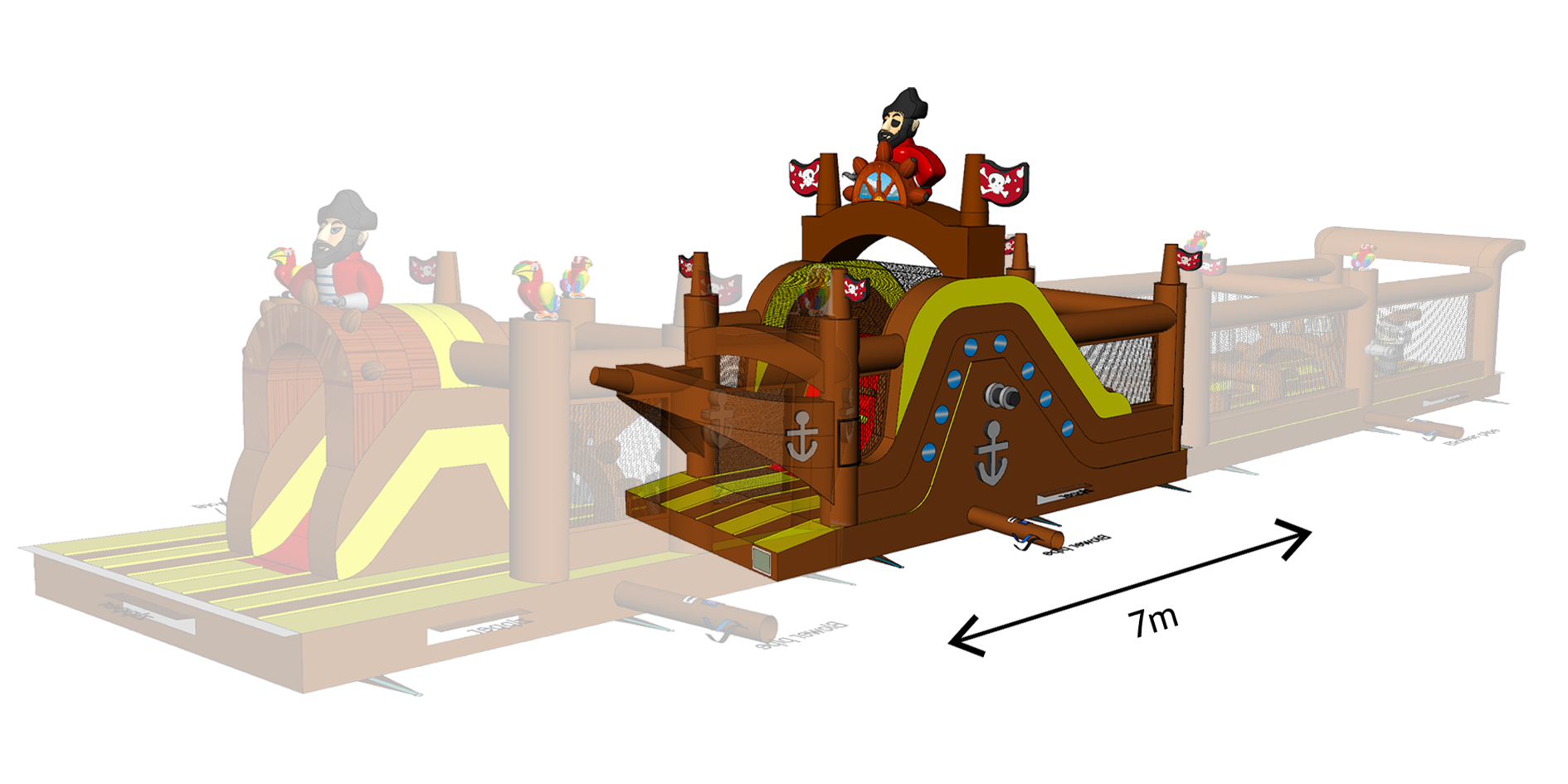 Aan de korte zijde van 4meter aan beide kanten kan een ander onderdeel worden aangesloten. Dit is duidelijk op de foto, het springkasteel dat minder zichtbaar is, is ter illustratie.