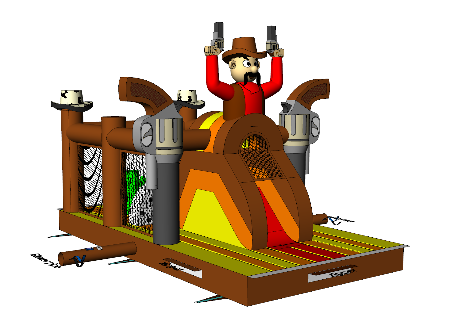 Heeft eventa Rent de leukste western springkastelen om uren in te springen! We hebben het hele western thema teruggebracht naar de meest stijlvolle kleuren en hier een prachtig western aanbod mee gecreëerd. De herkenbare pistolen en hoeden met de houten look van de klassieke westerndorpjes in combinatie met de frisse rood gele kleuren. Western feestjes in stijl met vooral een grote fun factor!
