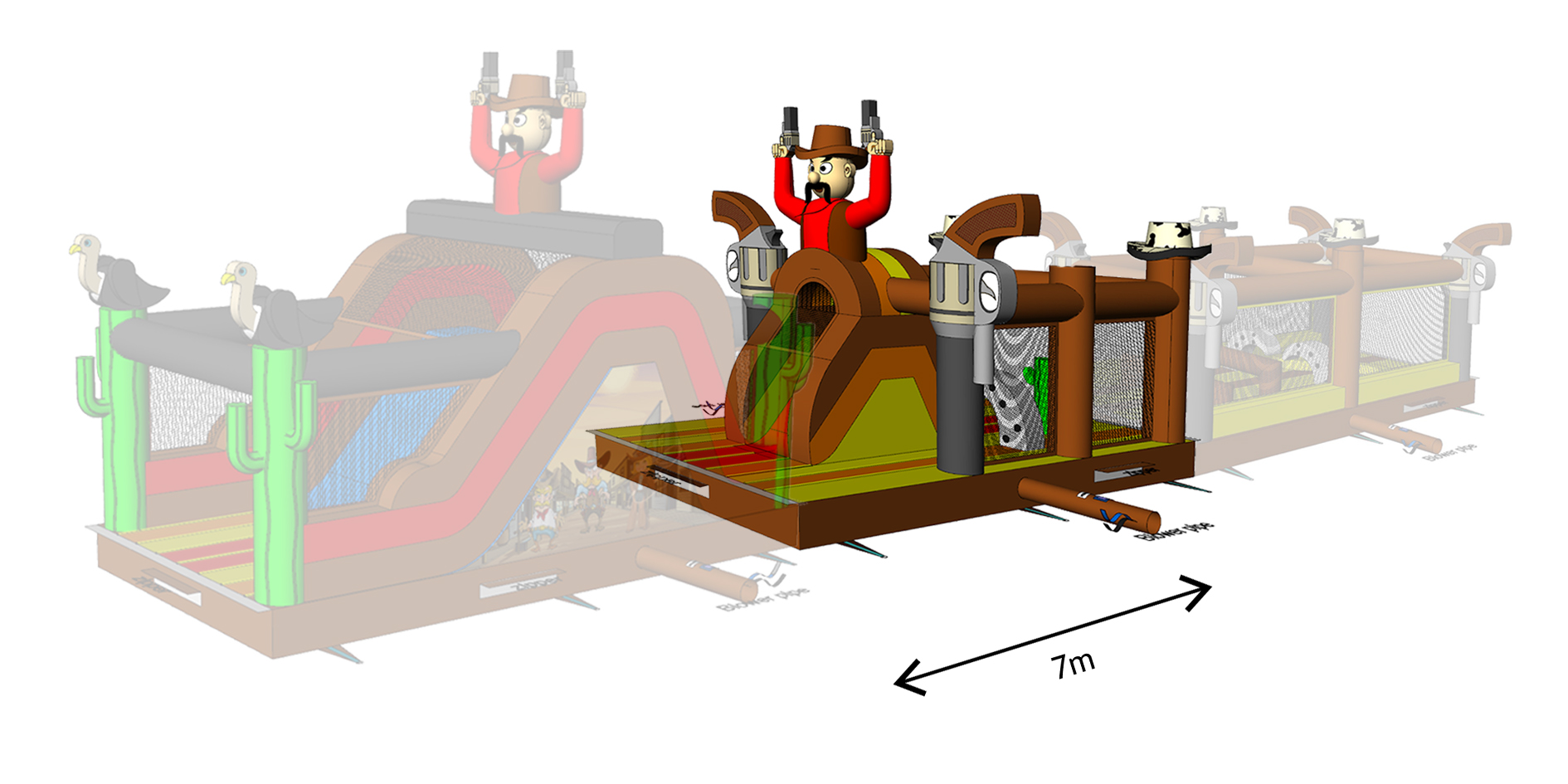 Met dit onderdeel van 7 meter heb je voor ieder wat wils, met een glijbaan, een springoppervlak en obstakels is dit een echte winner. Bovenop de glijbaan staat nog eens een super knappe blikvanger in thema!