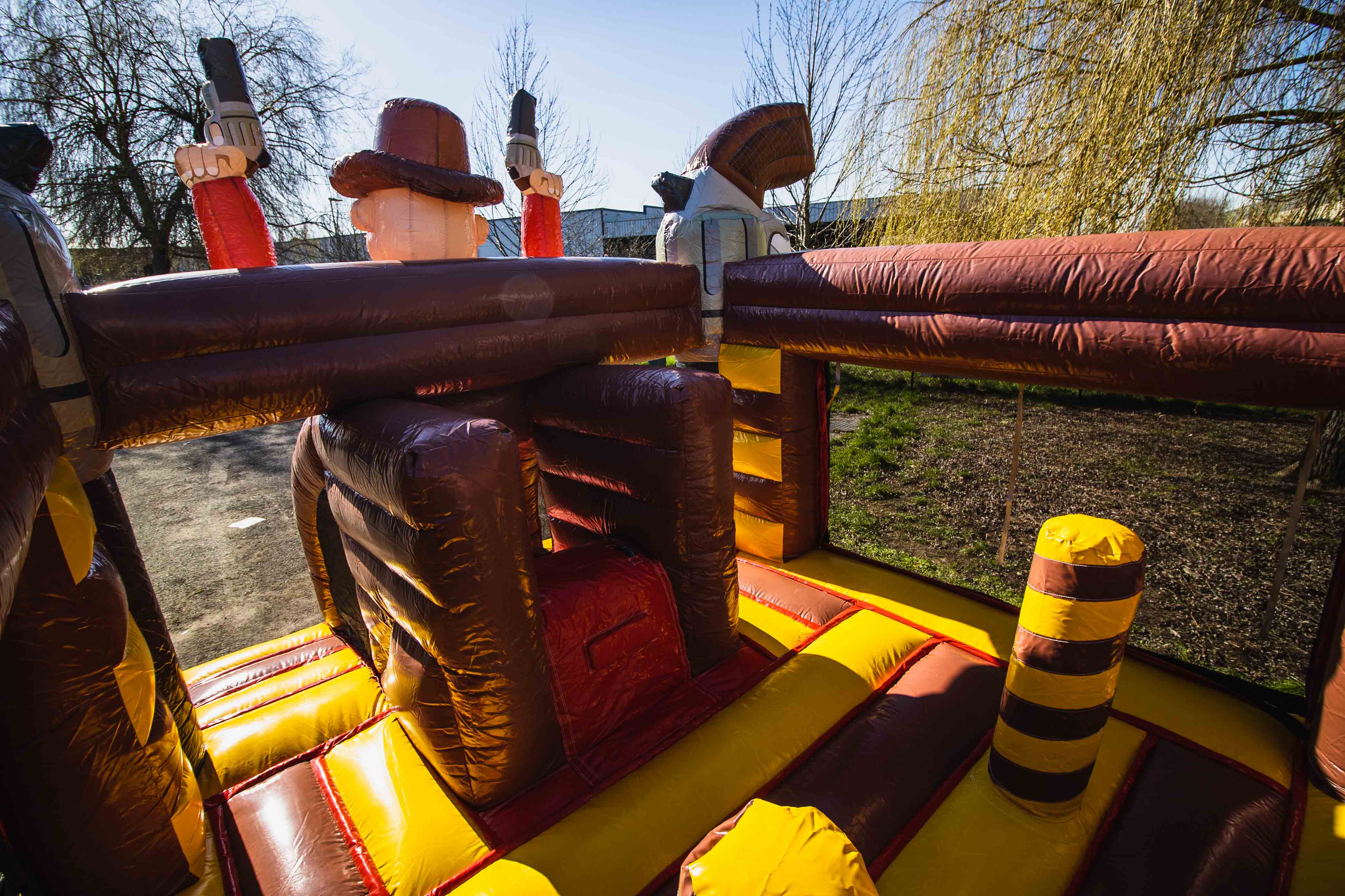 Heeft eventa Rent de leukste western springkastelen om uren in te springen! We hebben het hele western thema teruggebracht naar de meest stijlvolle kleuren en hier een prachtig western aanbod mee gecreëerd. De herkenbare pistolen en hoeden met de houten look van de klassieke westerndorpjes in combinatie met de frisse rood gele kleuren. Western feestjes in stijl met vooral een grote fun factor!