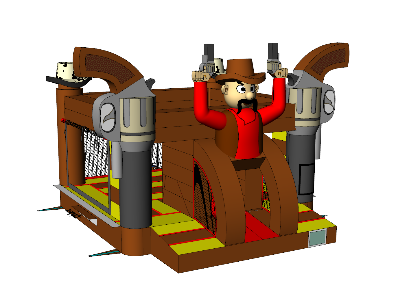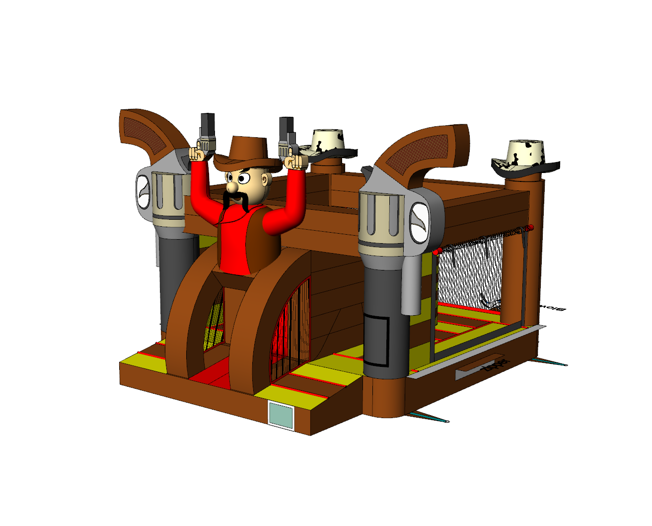 Heeft eventa Rent de leukste western springkastelen om uren in te springen! We hebben het hele western thema teruggebracht naar de meest stijlvolle kleuren en hier een prachtig western aanbod mee gecreëerd. De herkenbare pistolen en hoeden met de houten look van de klassieke westerndorpjes in combinatie met de frisse rood gele kleuren. Western feestjes in stijl met vooral een grote fun factor!