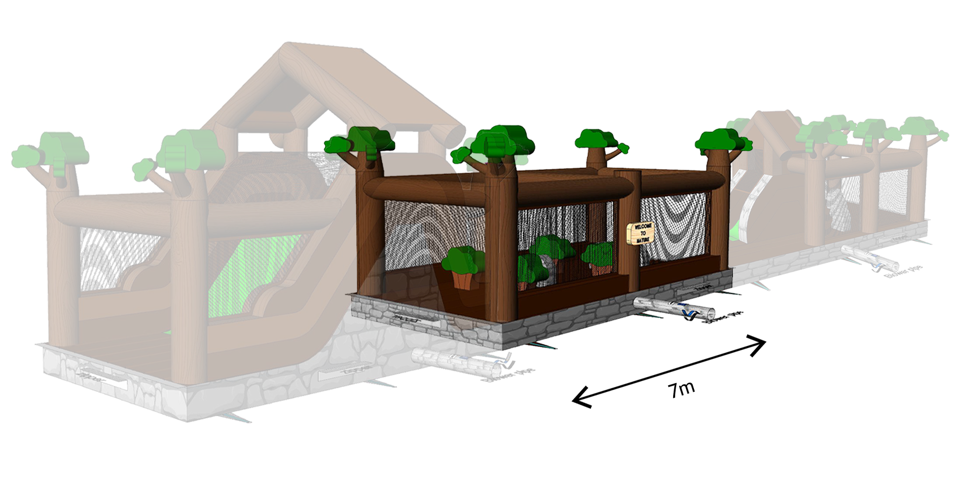 Dit leuke onderdeel bestaat uit hindernissen die te trotseren zijn. Leuk voor jong en oud en mooi in thema! Aan de zijkant heb je voor de veiligheid wanden met een sterk gaas waar je kan doorkijken in functie van de veiligheid.