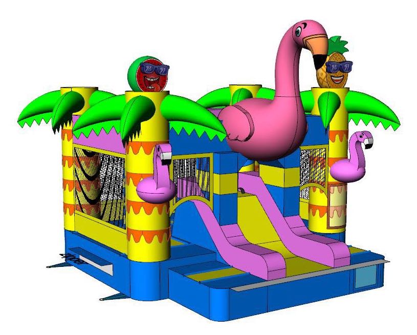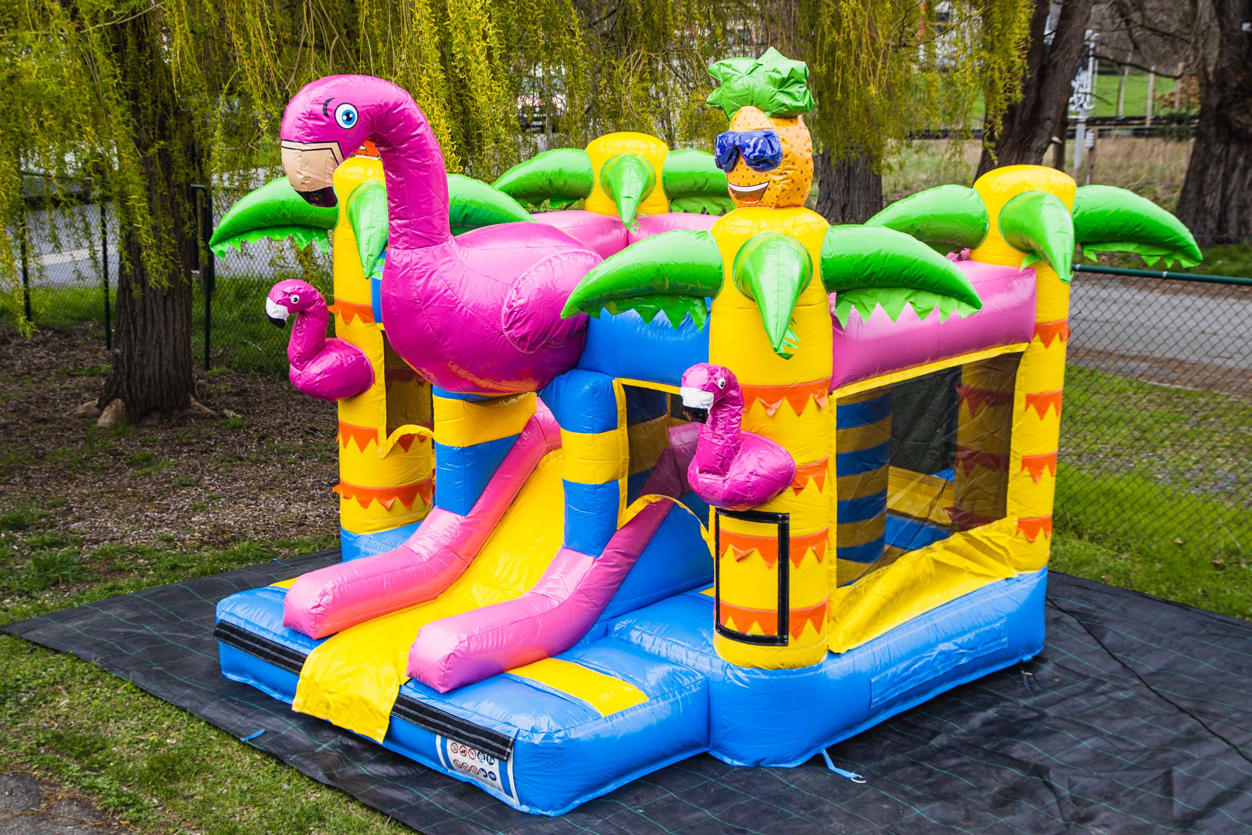 Roze en flamingo’s? Yes, dit flamingo springkasteel is de blikvanger op jouw hip feestje.Het springkasteel is veelgevraagd om echt in de vrolijke beach sfeer sfeer te komen. Met flamingo's breng je in een handomdraai exotische sferen naar je tuin met een roze toets!