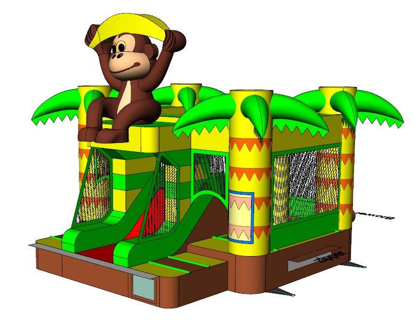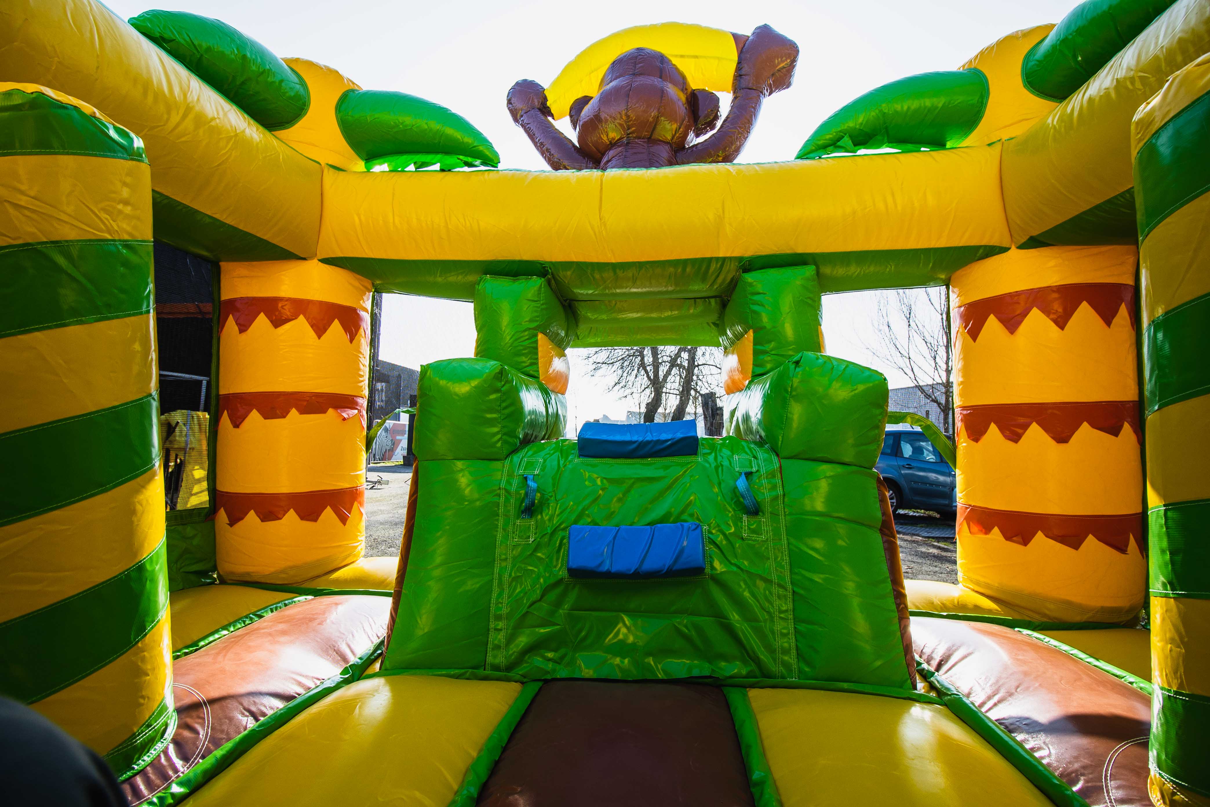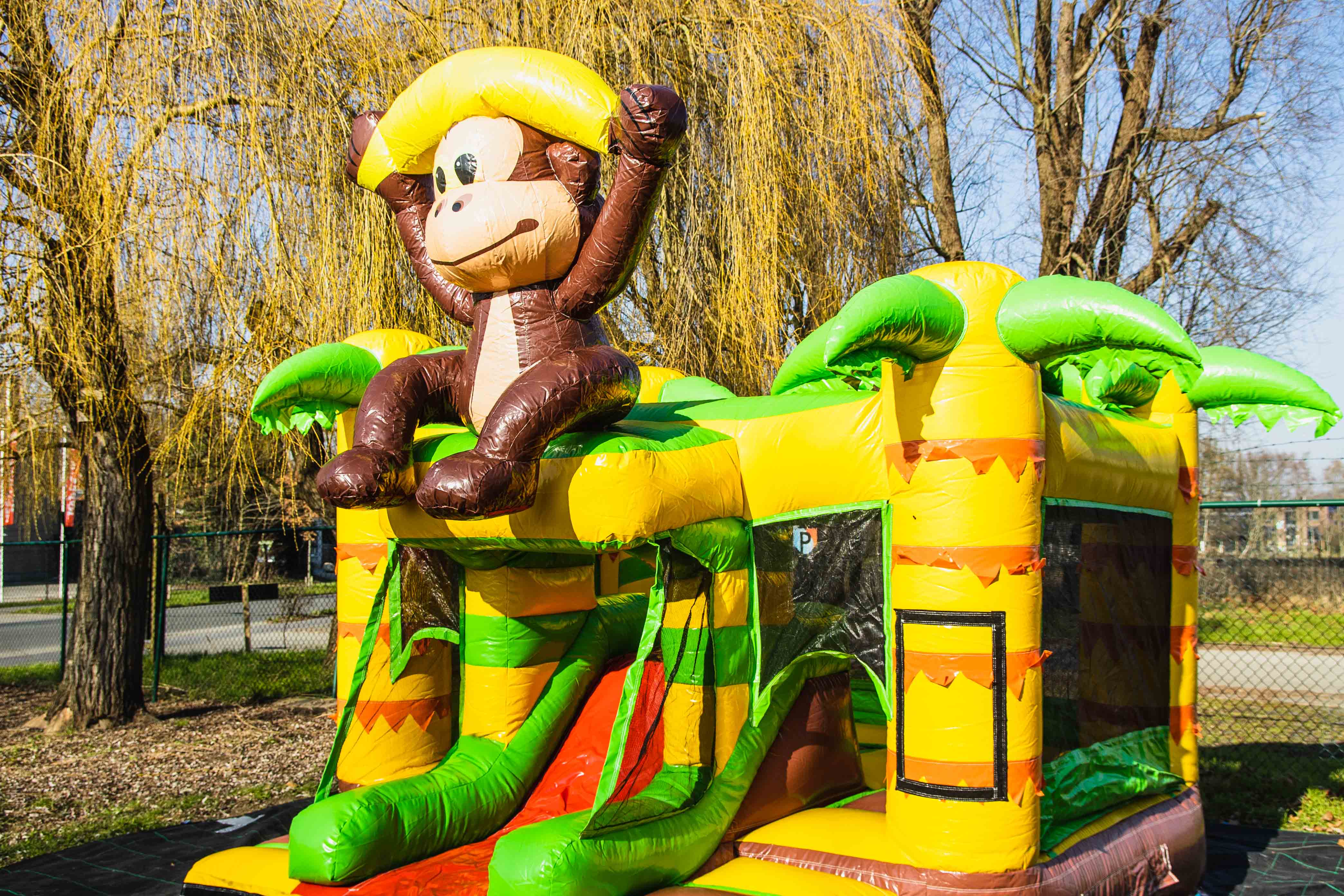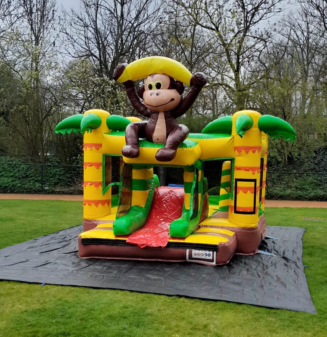 Dit mooie overdekte gorilla springkasteel is ideaal voor springplezier op jouw feest of evenement. Het springkasteel is veelgevraagd om echt in de jungle sfeer te komen. En laat ons eerlijk zijn, de aapjes is toch wel 1 van de favoriete dieren waar we naar toe snellen bij een bezoekje aan de dierentuin. Ook voor themafeesten en events in safari- of jungle-thema kan dit springkasteel inspiratie brengen voor de verdere inkleding!