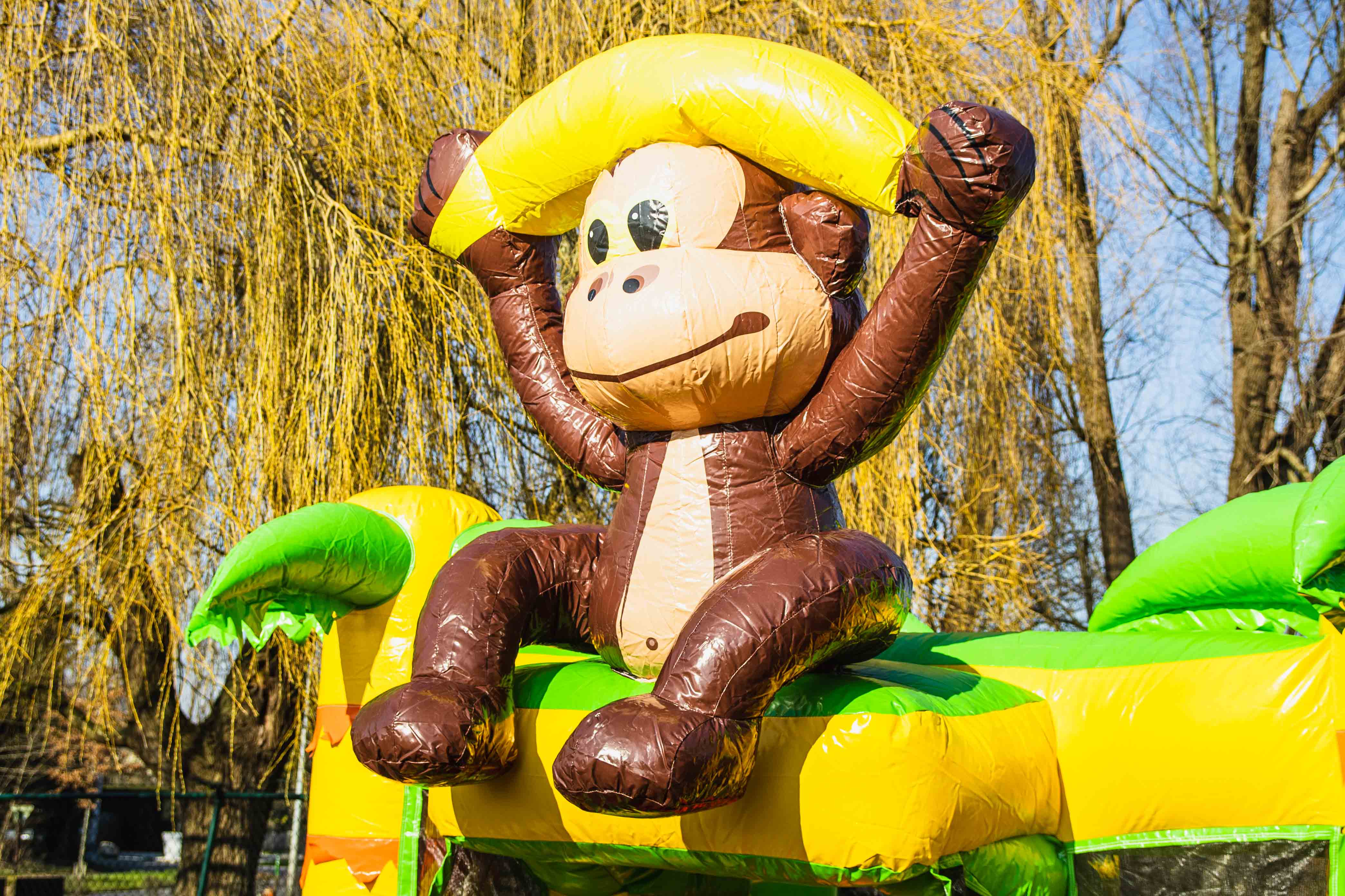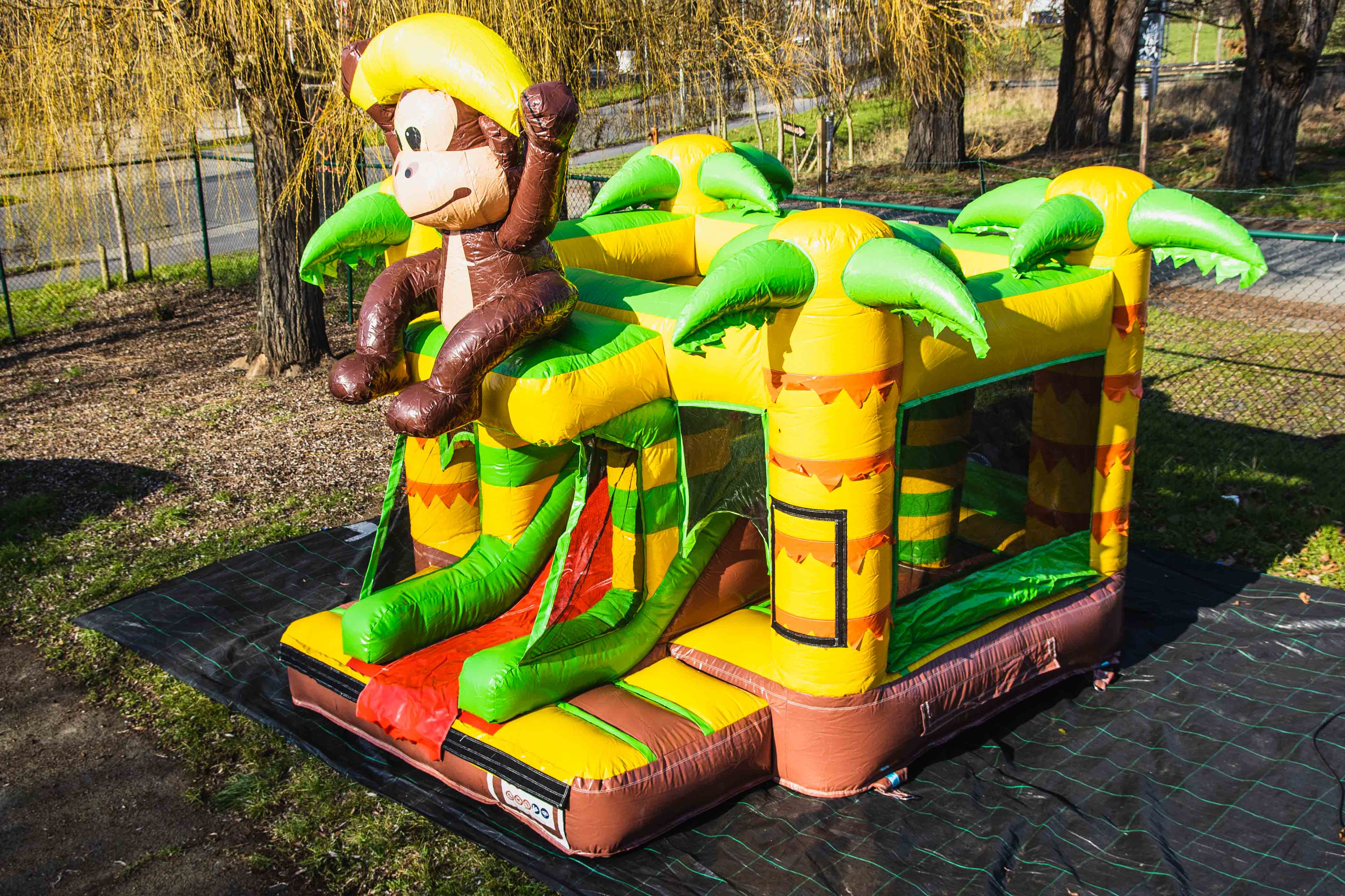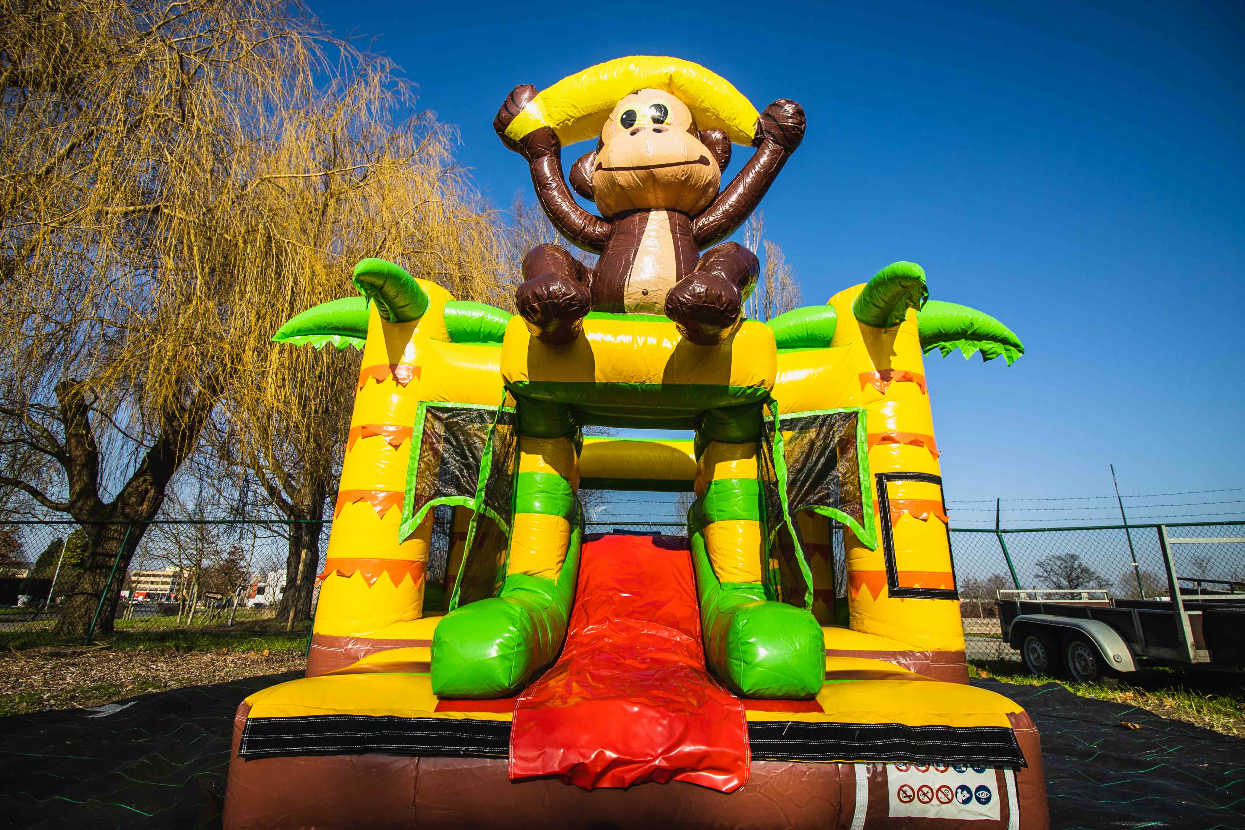 Dit mooie overdekte gorilla springkasteel is ideaal voor springplezier op jouw feest of evenement. Het springkasteel is veelgevraagd om echt in de jungle sfeer te komen. En laat ons eerlijk zijn, de aapjes is toch wel 1 van de favoriete dieren waar we naar toe snellen bij een bezoekje aan de dierentuin. Ook voor themafeesten en events in safari- of jungle-thema kan dit springkasteel inspiratie brengen voor de verdere inkleding!