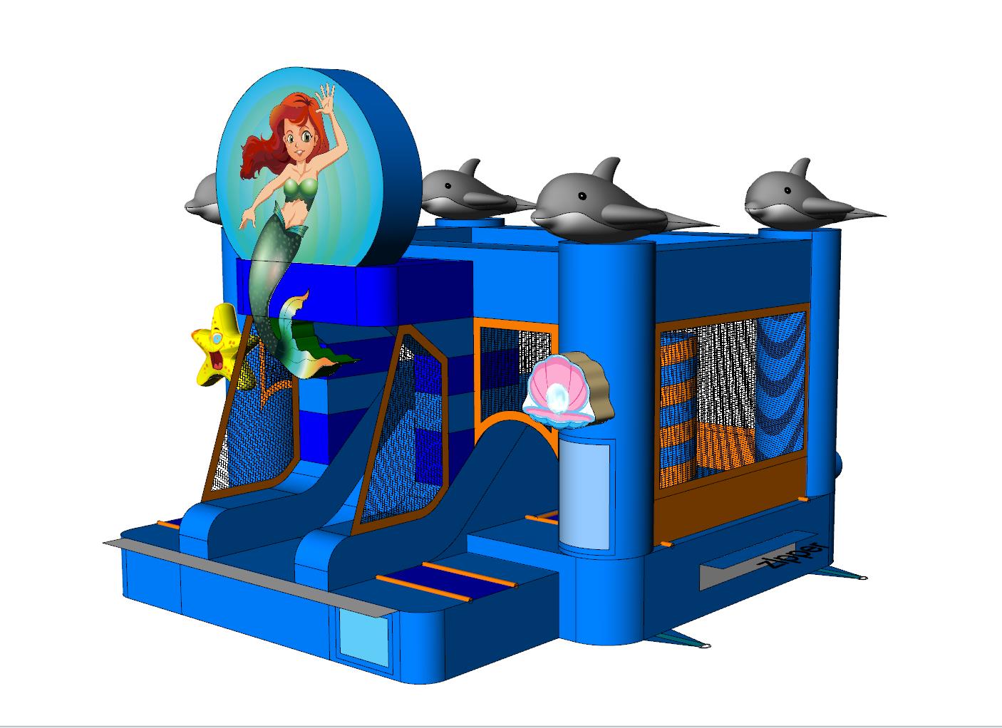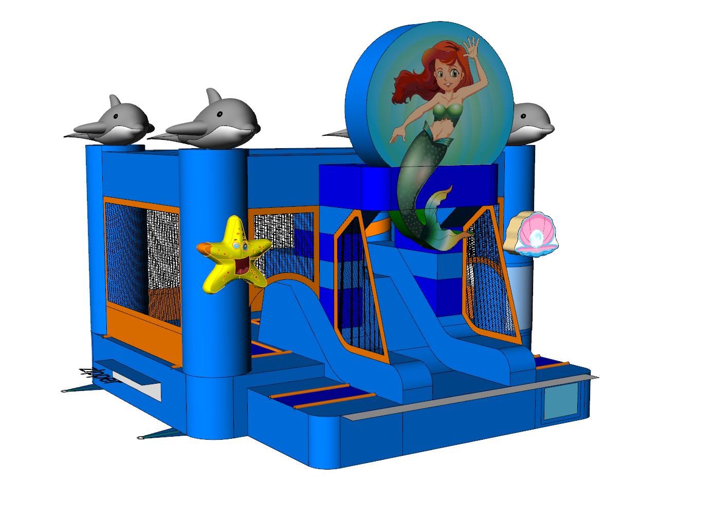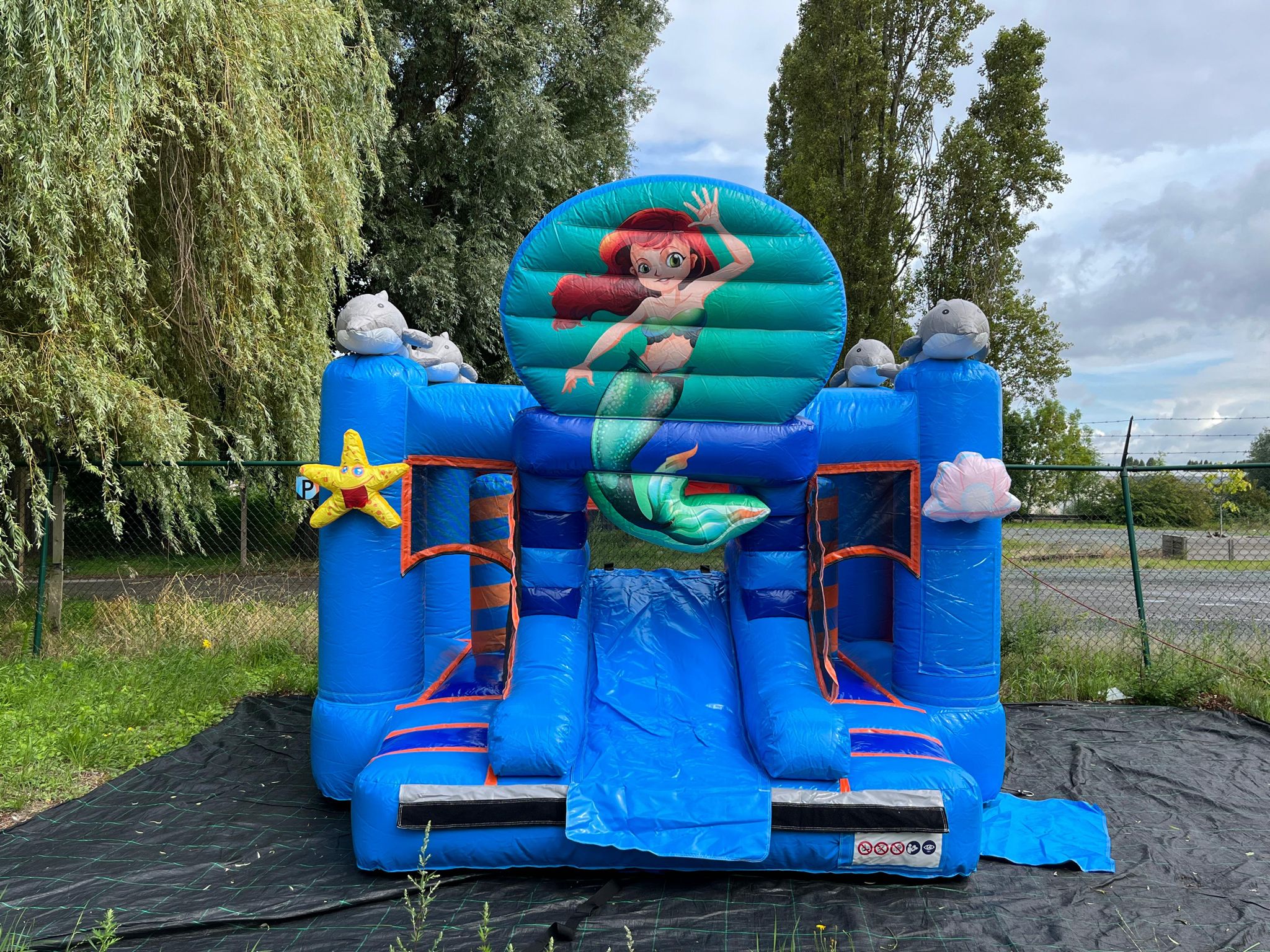 Een springkasteel met een echte en knappe zeemeermin bovenaan is de favoriet van vele meisjes in het zeewereld thema. Met leuke details als een zeester, vis en verschillende blauwe kleuren tover je je tuin of event om tot een onderwaterwereld.