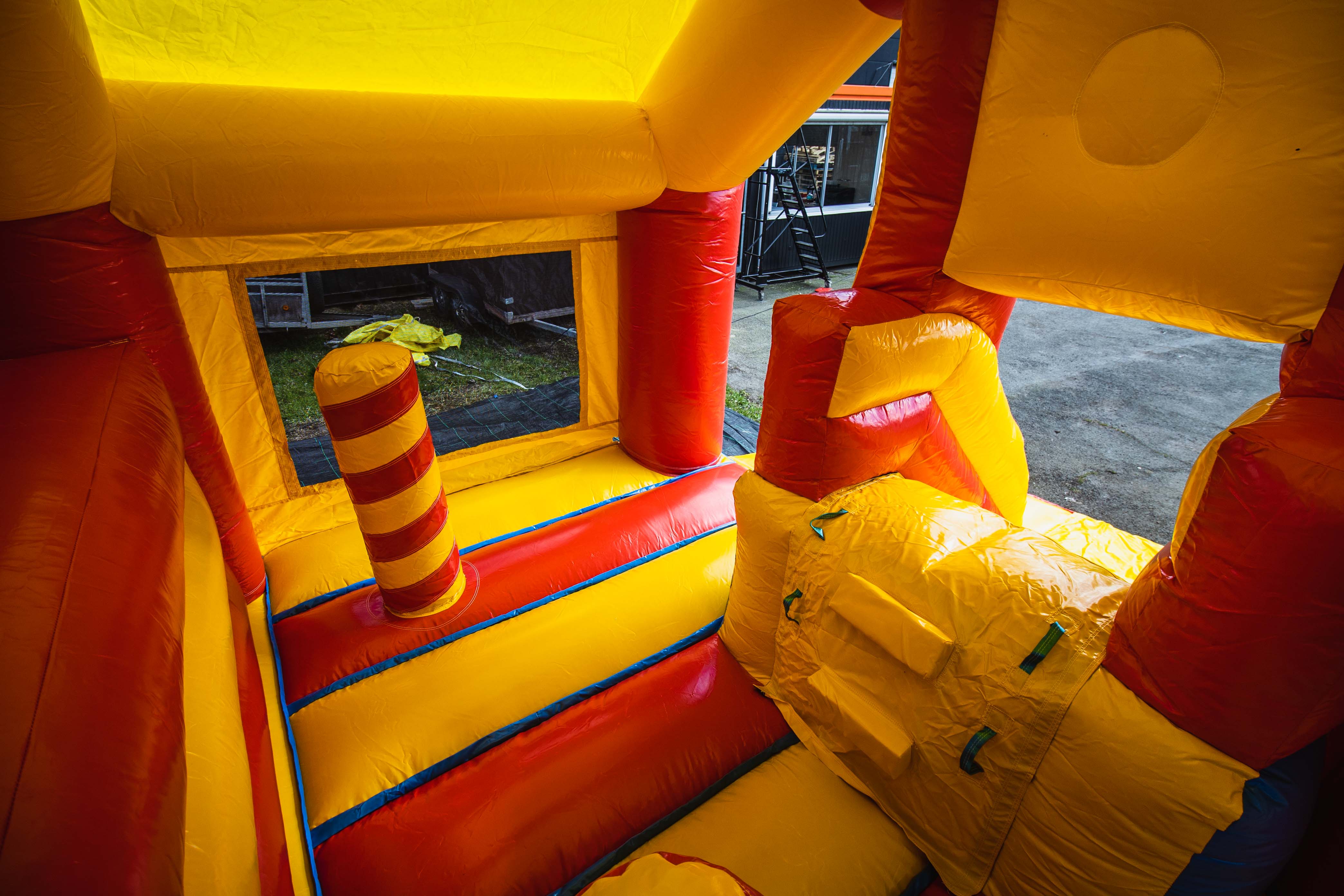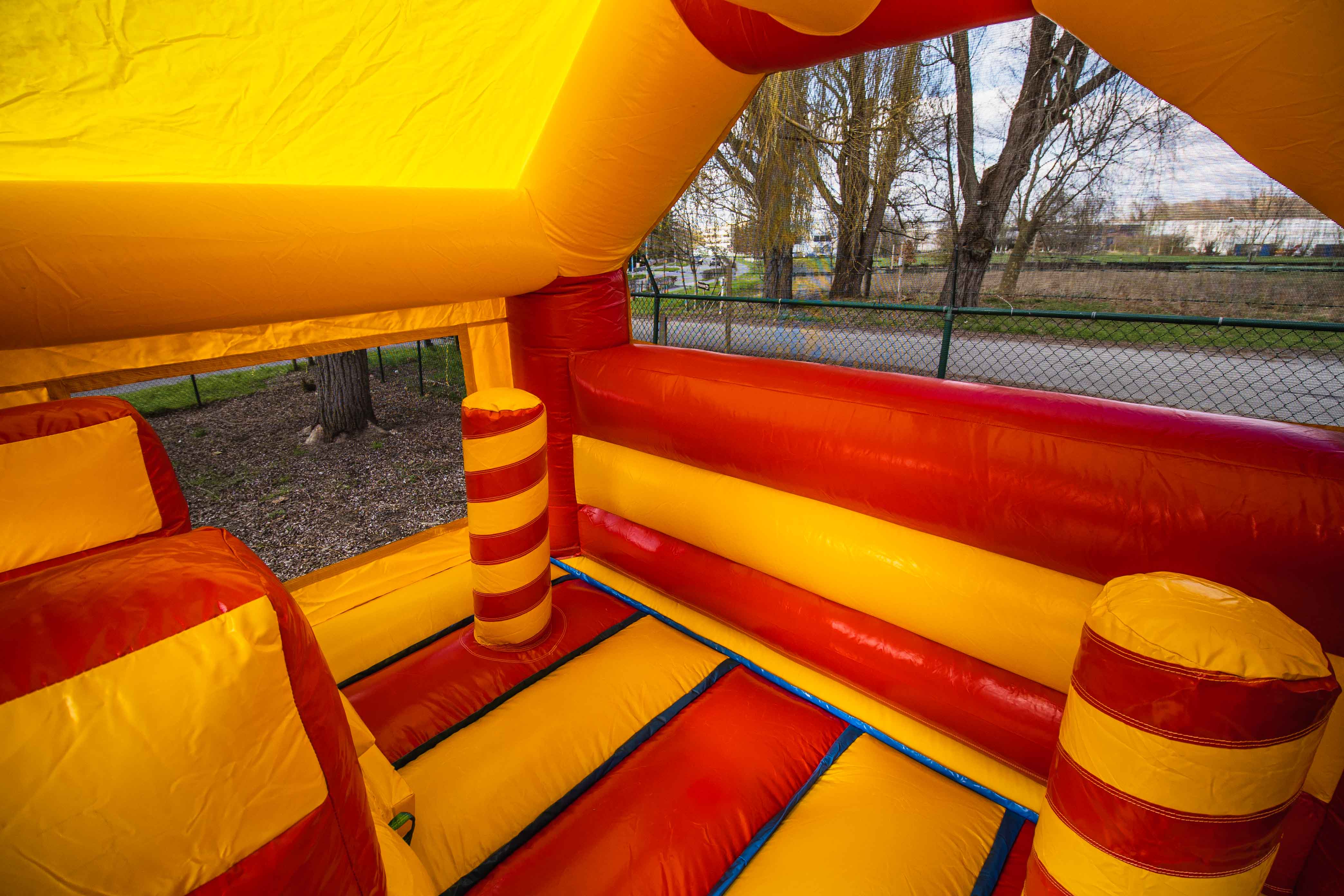 Het springkussen heeft een glijbaan aan de voorkant en meerdere obstakels binnenin het kasteel.Een ander voordeel is dat het springkussen voorzien is van netten aan de zijkanten zodat ouders hun kinderen altijd kunnen zien.