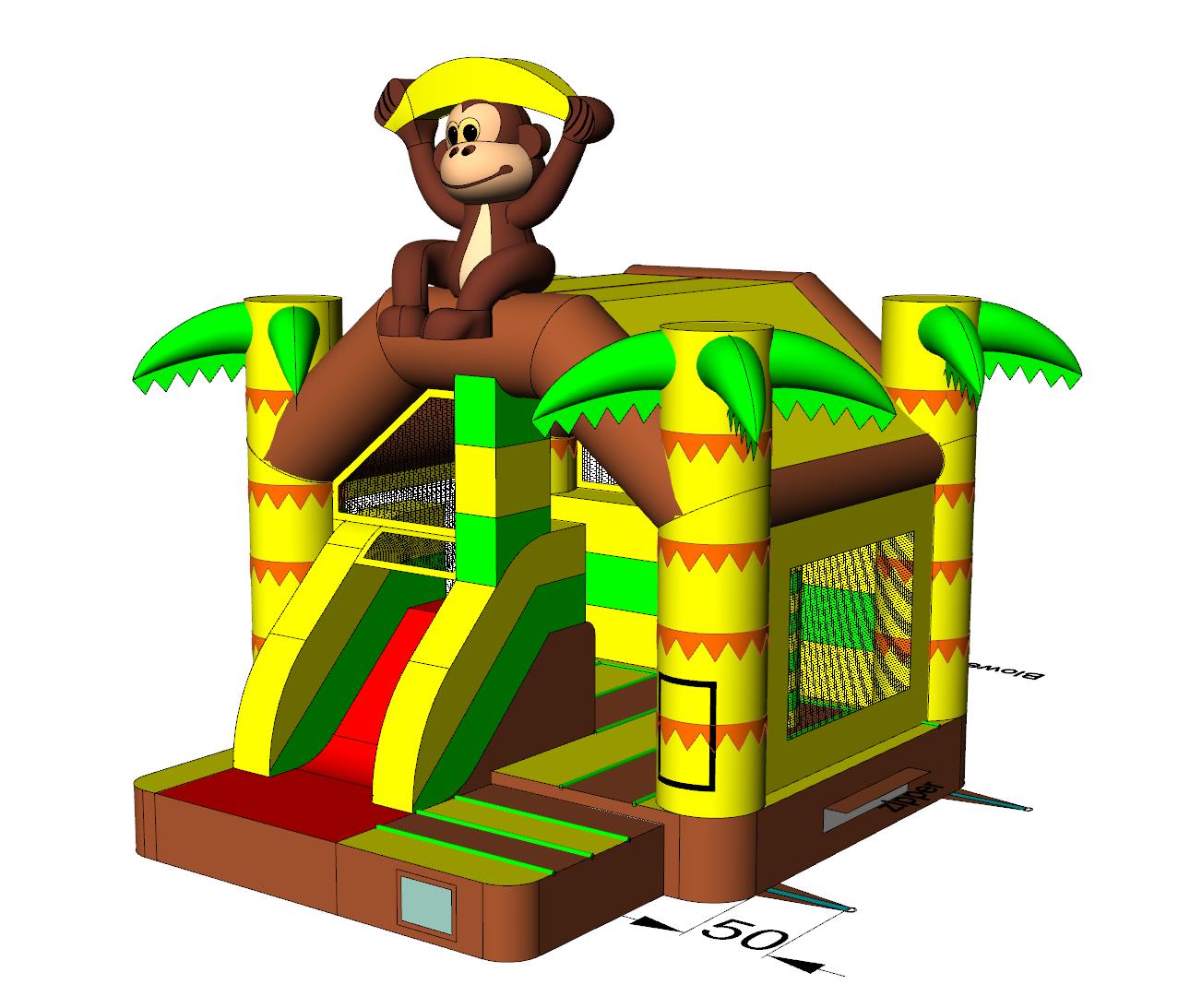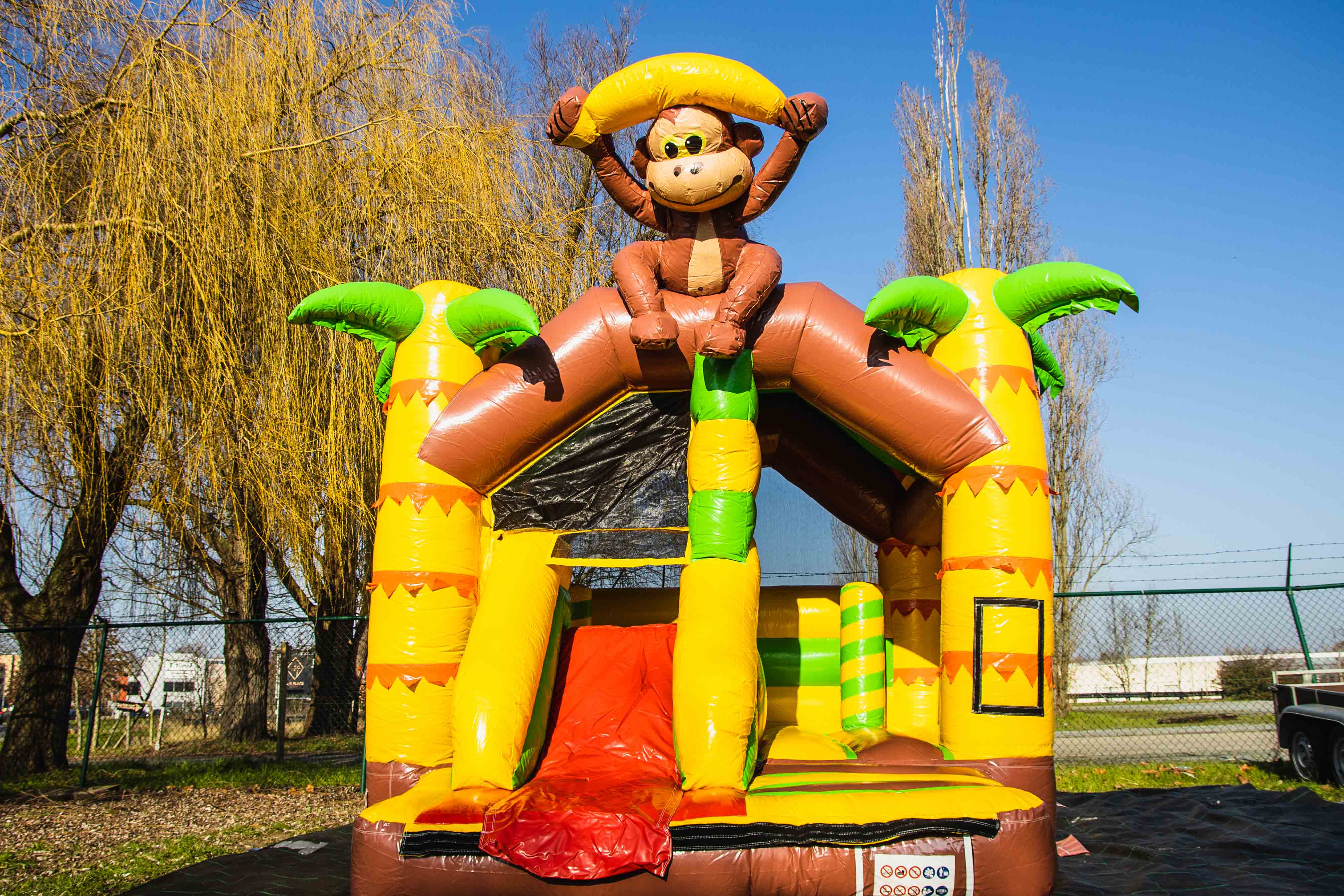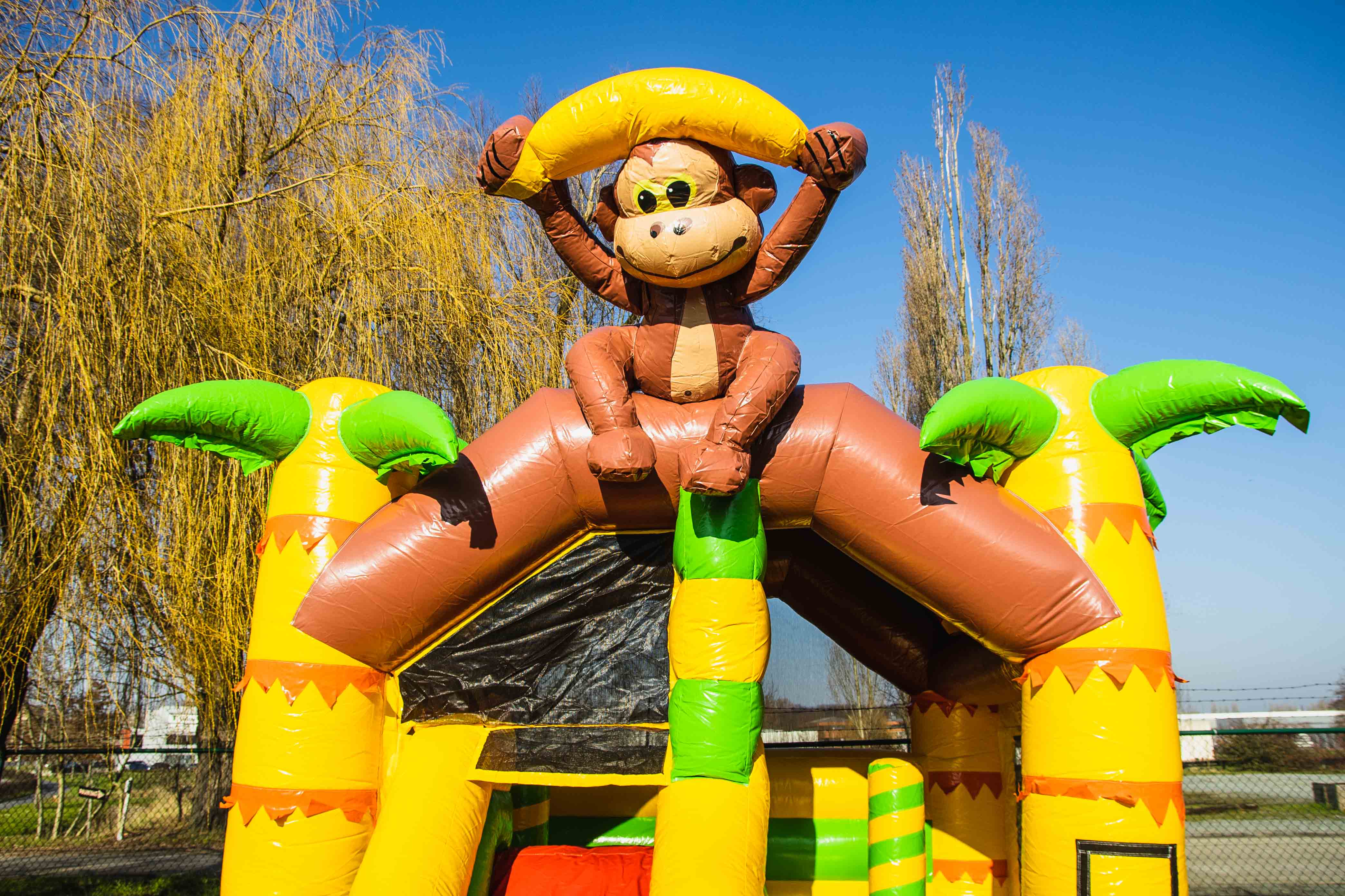 Dit mooie overdekte gorilla springkasteel is ideaal voor springplezier op jouw feest of evenement. Het springkasteel is veelgevraagd om echt in de jungle sfeer te komen. En laat ons eerlijk zijn, de aapjes is toch wel 1 van de favoriete dieren waar we naar toe snellen bij een bezoekje aan de dierentuin. Ook voor themafeesten en events in safari- of jungle-thema kan dit springkasteel inspiratie brengen voor de verdere inkleding!