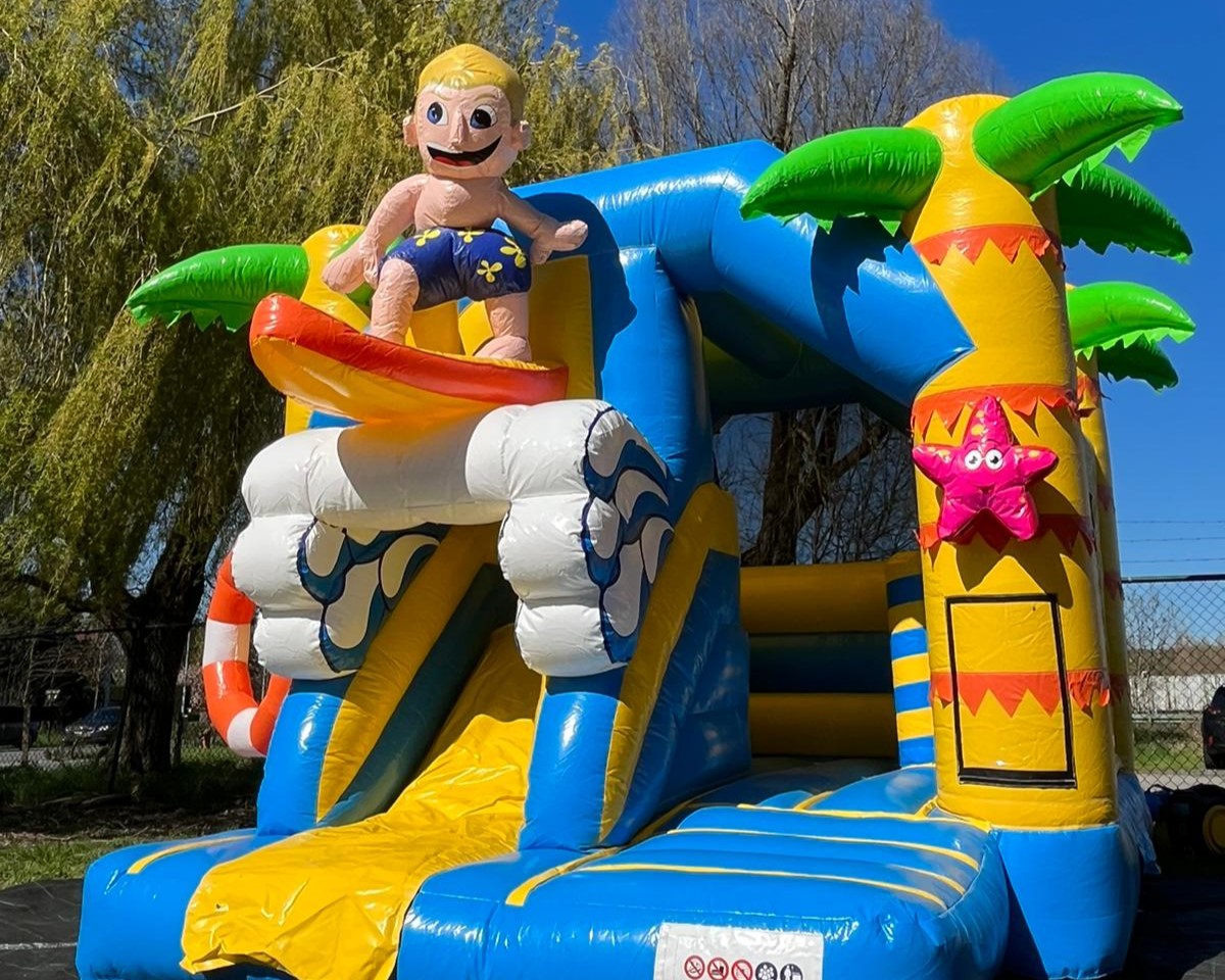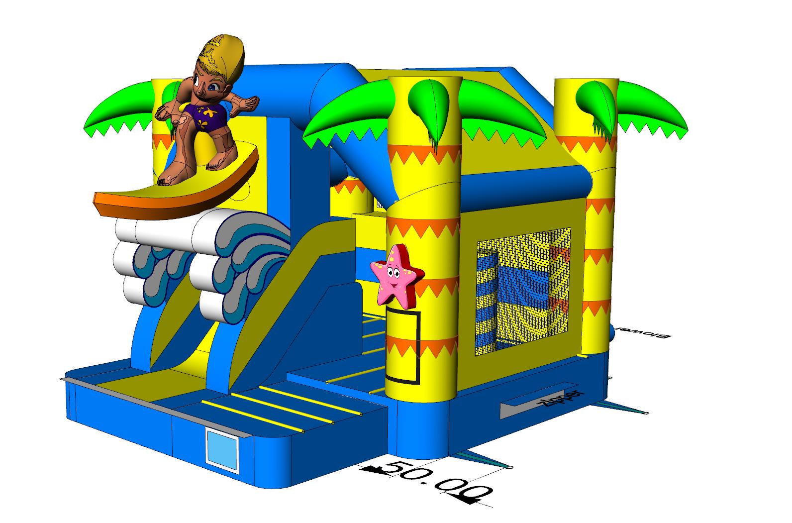 Onze surf en beach springkastelen zijn veruit 1 van onze meest stoere springkastelen. Dankzij de exotische look baden ze jouw feestje onmiddellijk in de tropische beach sferen. Een ideale blikvanger voor elke beach party!