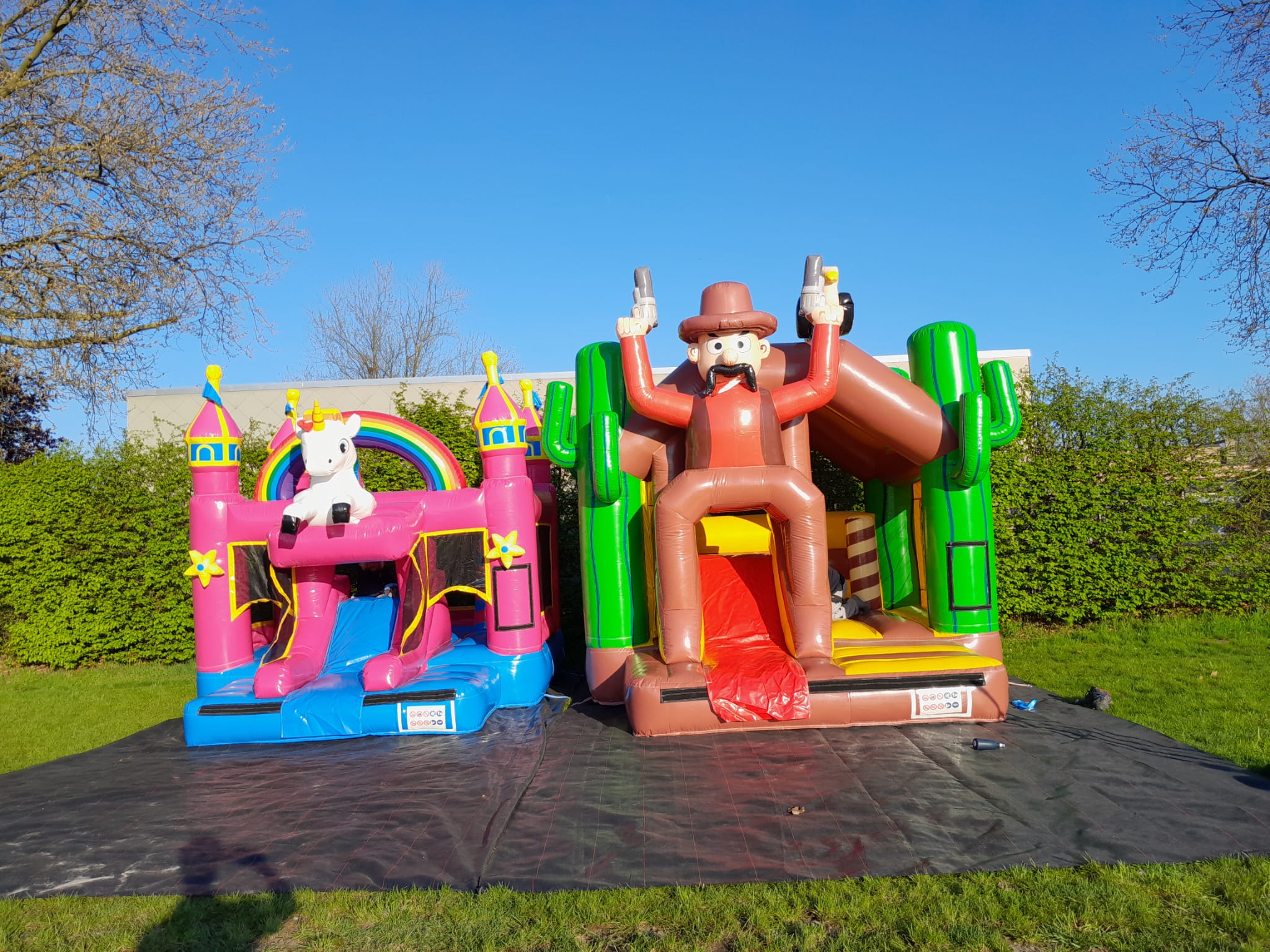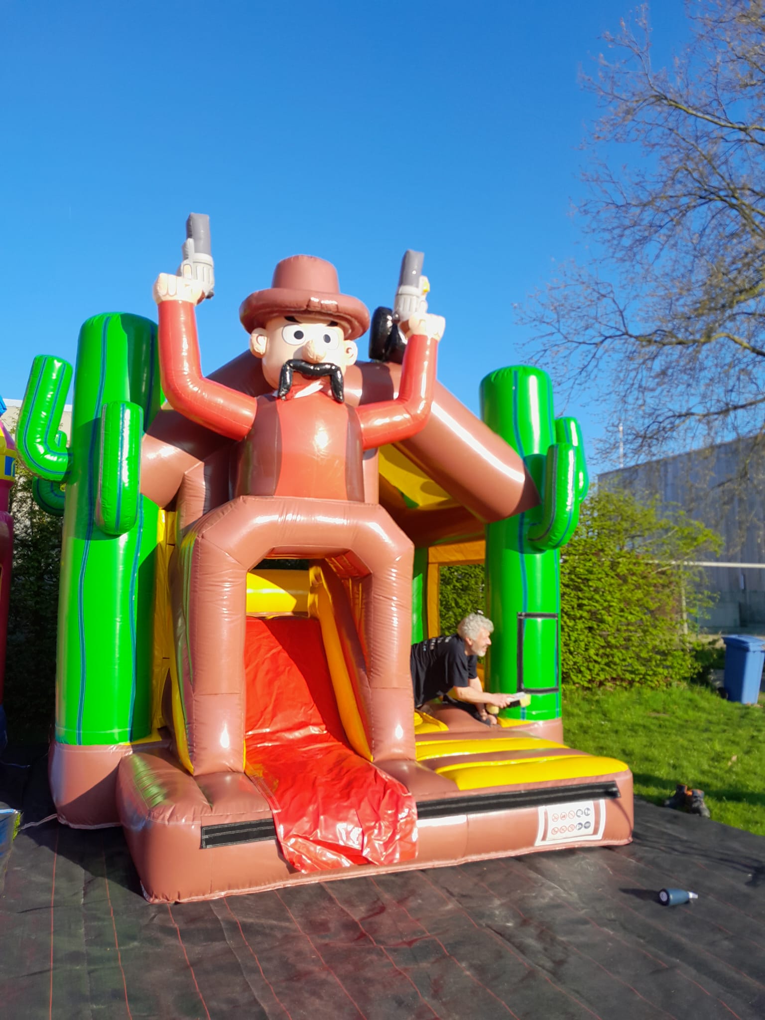 Heeft eventa Rent de leukste western springkastelen om uren in te springen! We hebben het hele western thema teruggebracht naar de meest stijlvolle kleuren en hier een prachtig western aanbod mee gecreëerd. De herkenbare pistolen en hoeden met de houten look van de klassieke westerndorpjes in combinatie met de frisse rood gele kleuren. Western feestjes in stijl met vooral een grote fun factor!