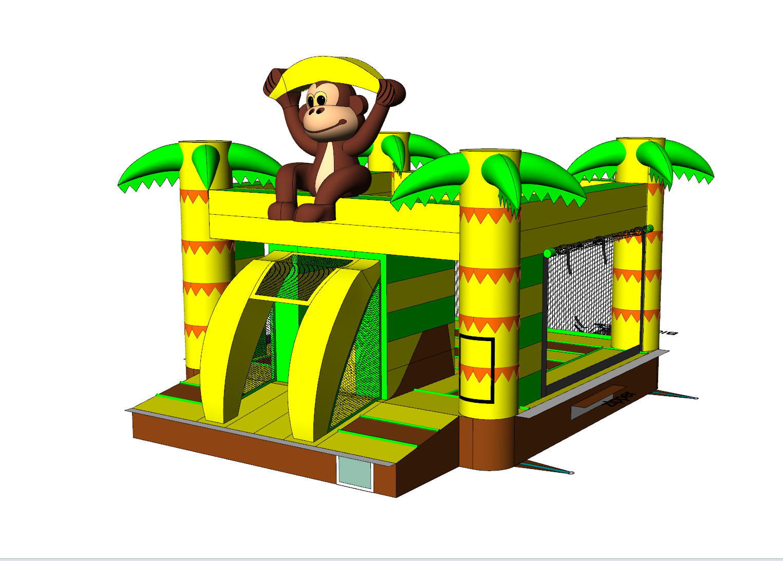 Dit mooie overdekte gorilla springkasteel is ideaal voor springplezier op jouw feest of evenement. Het springkasteel is veelgevraagd om echt in de jungle sfeer te komen. En laat ons eerlijk zijn, de aapjes is toch wel 1 van de favoriete dieren waar we naar toe snellen bij een bezoekje aan de dierentuin. Ook voor themafeesten en events in safari- of jungle-thema kan dit springkasteel inspiratie brengen voor de verdere inkleding!