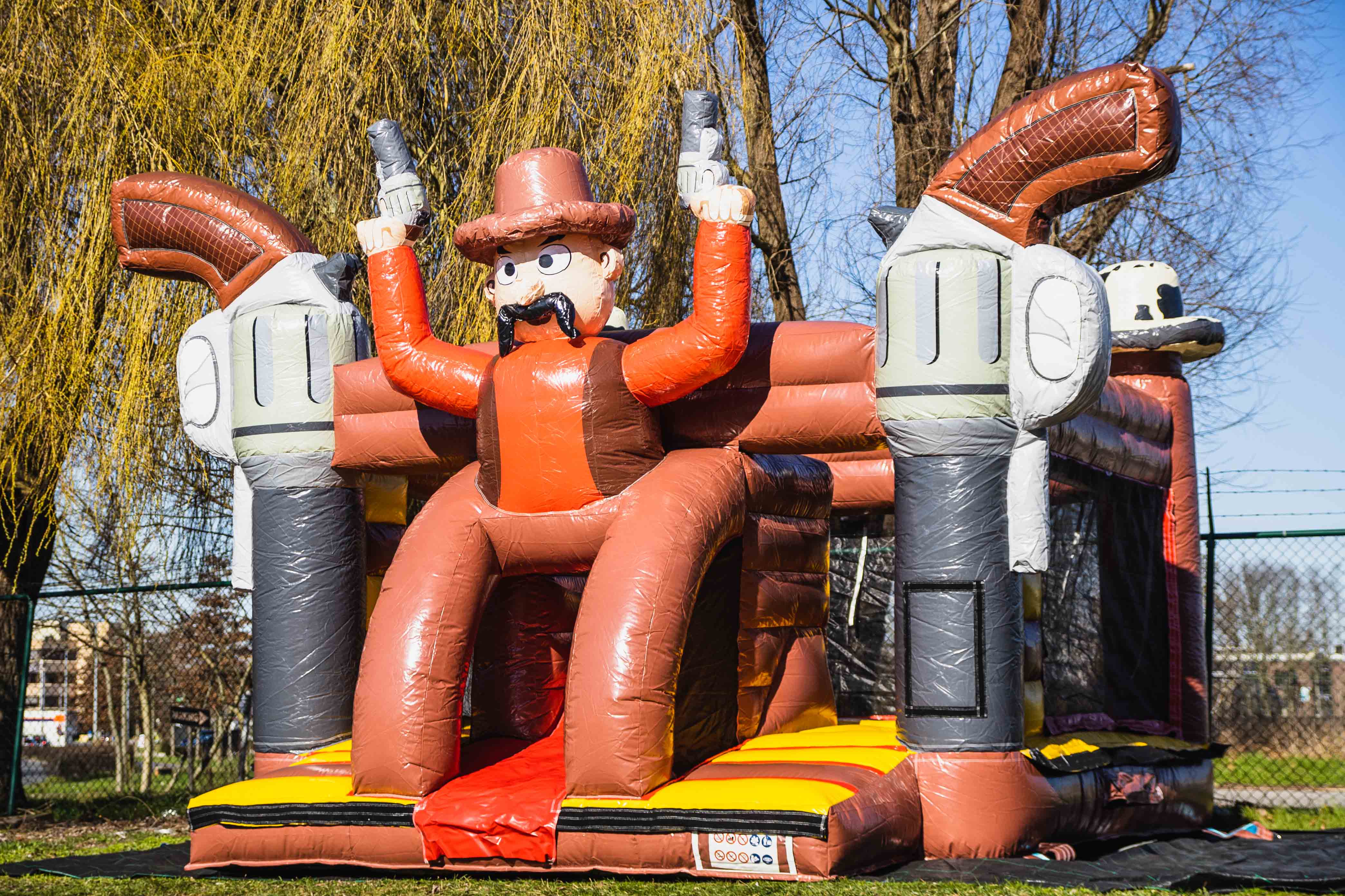 Heeft eventa Rent de leukste western springkastelen om uren in te springen! We hebben het hele western thema teruggebracht naar de meest stijlvolle kleuren en hier een prachtig western aanbod mee gecreëerd. De herkenbare pistolen en hoeden met de houten look van de klassieke westerndorpjes in combinatie met de frisse rood gele kleuren. Western feestjes in stijl met vooral een grote fun factor!