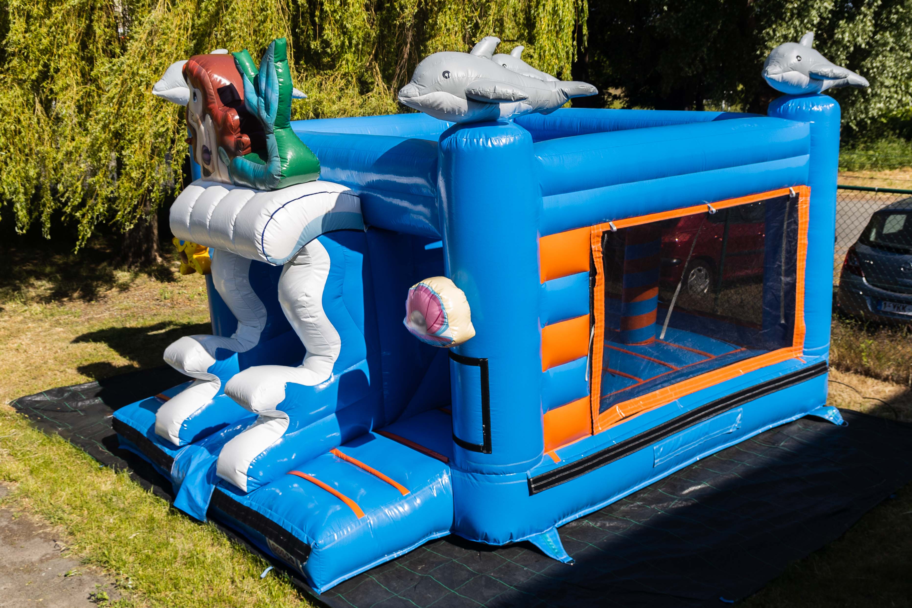 We hebben bewust gekozen voor geen dak omdat dit bij regen eigenlijk geen verschil maakt, het springkasteel zo lichter is in transport en het minder hoog is om onder een boom of in een zaal te plaatsen. Elk springkasteel, ook met dak wordt met regen binnenin nat. Onze ervaring leert ons dat je als huurder/ organisator vaak iets te veel “schrik” hebt van regen tijdens je feest. En dat herkennen wij zelf ook als we een feestje organiseren. In praktijk zien we echter echter, dat ook op dagen dat er gigantisch veel regen voorspeld wordt, het aantal minuten dat het echt regent tijdens je feest achteraf altijd meevalt. En ook ondanks wat regen is het plezier met het springkasteel niet minder. In het slechtste geval springen de kids niet op het kasteel als het regent (geloof me, dat vinden ze vaak ook plezant) en neem je enkele handdoeken als de bui over is, het kasteel is binnen de 2 minuten opnieuw droog om weer voluit te springen.