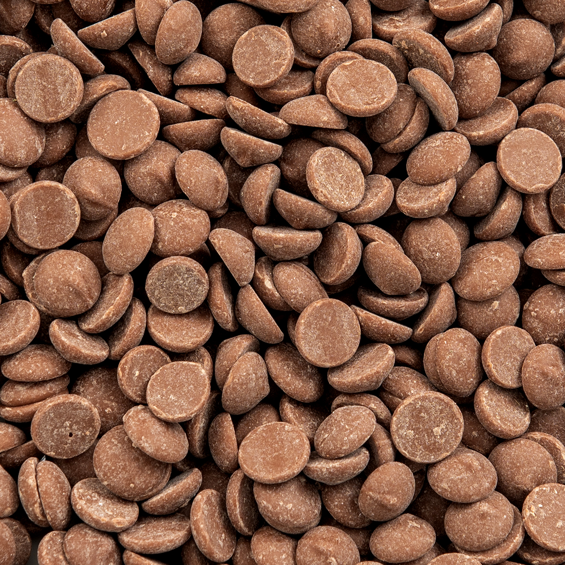 Deze melk chocolade druppels zijn ongeveer 10 milimeter groot.