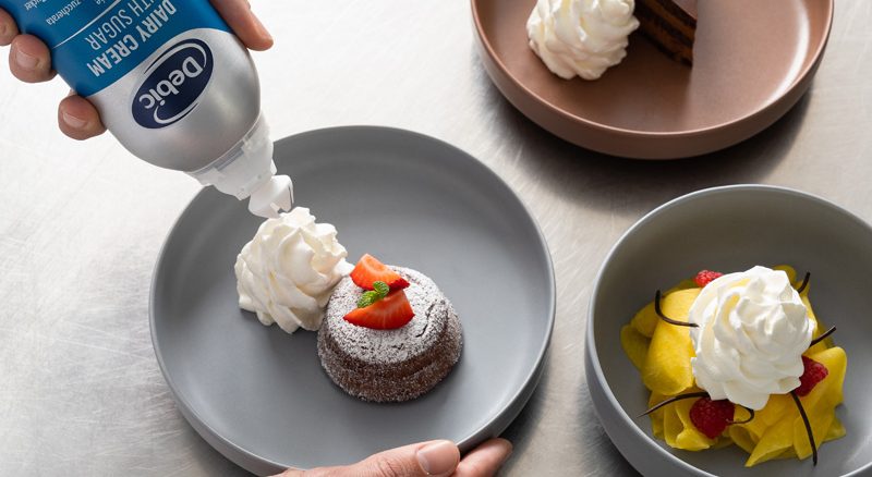 Debic slagroom met suiker in spuitbus heeft een volle en romige smaak en staat garant voor een professionele toef met een goede stand en stevigheid. Daardoor is deze slagroom perfect voor gebruik op zowel koude als warme dranken. De innovatieve hendel en spuitkop zorgen voor een makkelijke bediening en mooie scherpe randen.