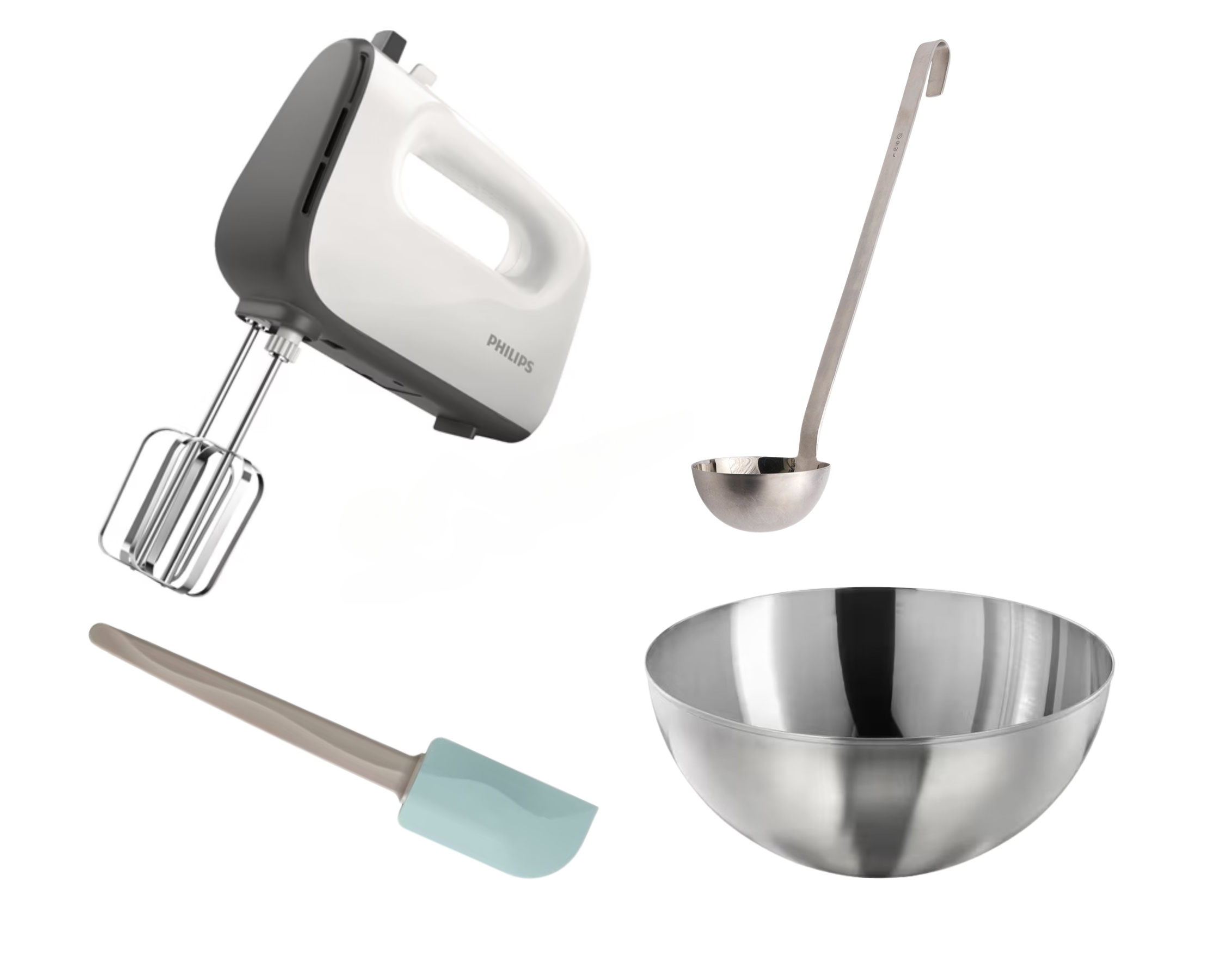 - Bakset | Mixer, Beslagkom, Pannenlikker & Pollepel
