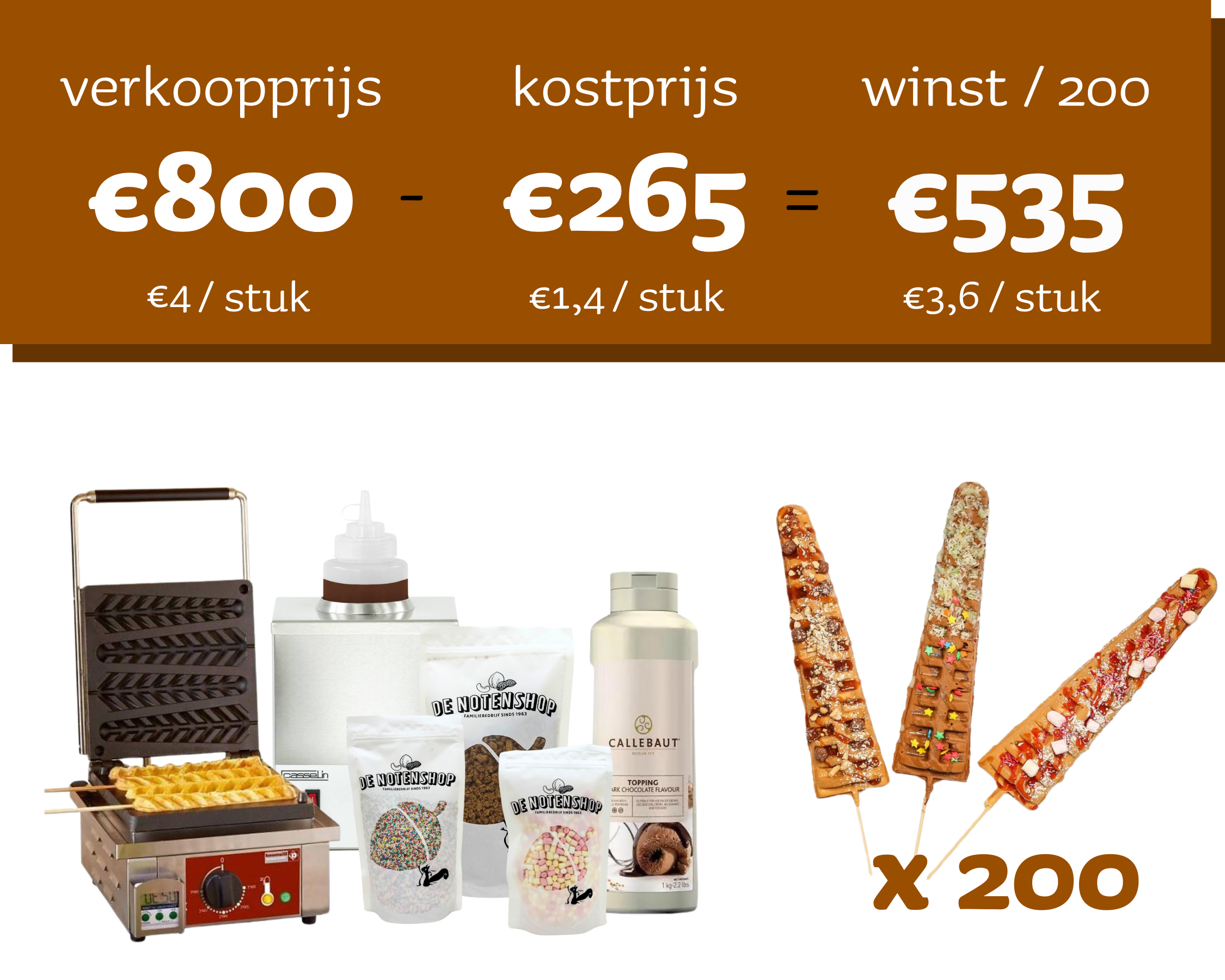 Verkoopset 200 Lolly Wafels (incl. toppings)