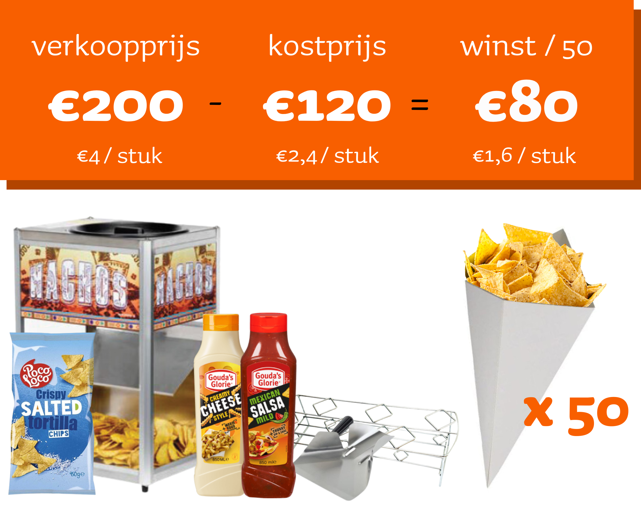 - Nachomachine: Huur onze professionele nachomachine om de nacho's perfect warm te houden en klaar te maken voor het serveren. (Aantal: 1 stuk)