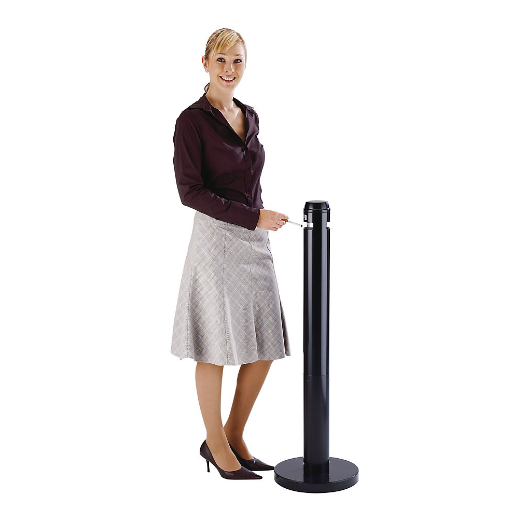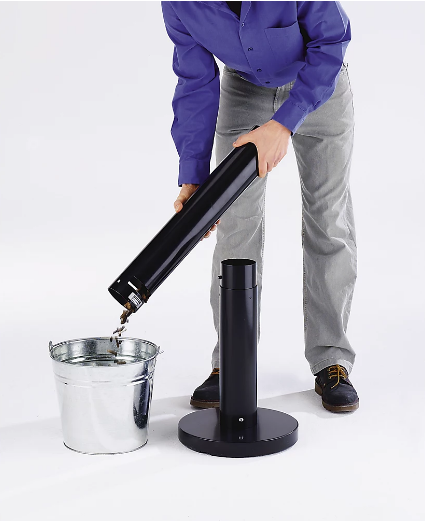 Bij de huur van onze grote asbak voorzie je het nodige voor de rokers onder de aanwezigen. ze kunnen hun sigaret bovenaan op doven en in de ruime opvangbak van 4 liter de sigaret laten vallen. Het proper maken kan eenvoudig door het kliksysteem waardoor je geen sleutel nodig hebt, zie foto 2.