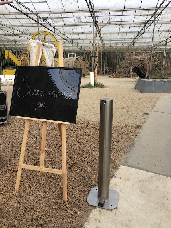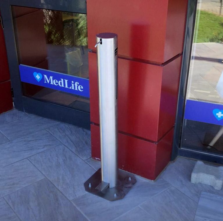 Per liter reken je bij deze desinfectiepaal op 1250 desinfecties.