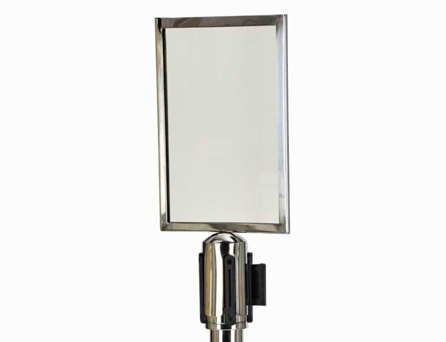 Deze kaarthouder is speciaal ontworpen om te passen op onze afzetpalen, waardoor je een gestroomlijnde en professionele uitstraling creëert. Wat deze kaarthouder extra functioneel maakt, is dat deze aan beide zijden transparant is. Dit betekent dat je vanuit elke richting informatie kunt delen, of het nu gaat om een plattegrond van je evenement, speciale aanbiedingen, welkomstberichten of COVID-19-gerelateerde instructies.