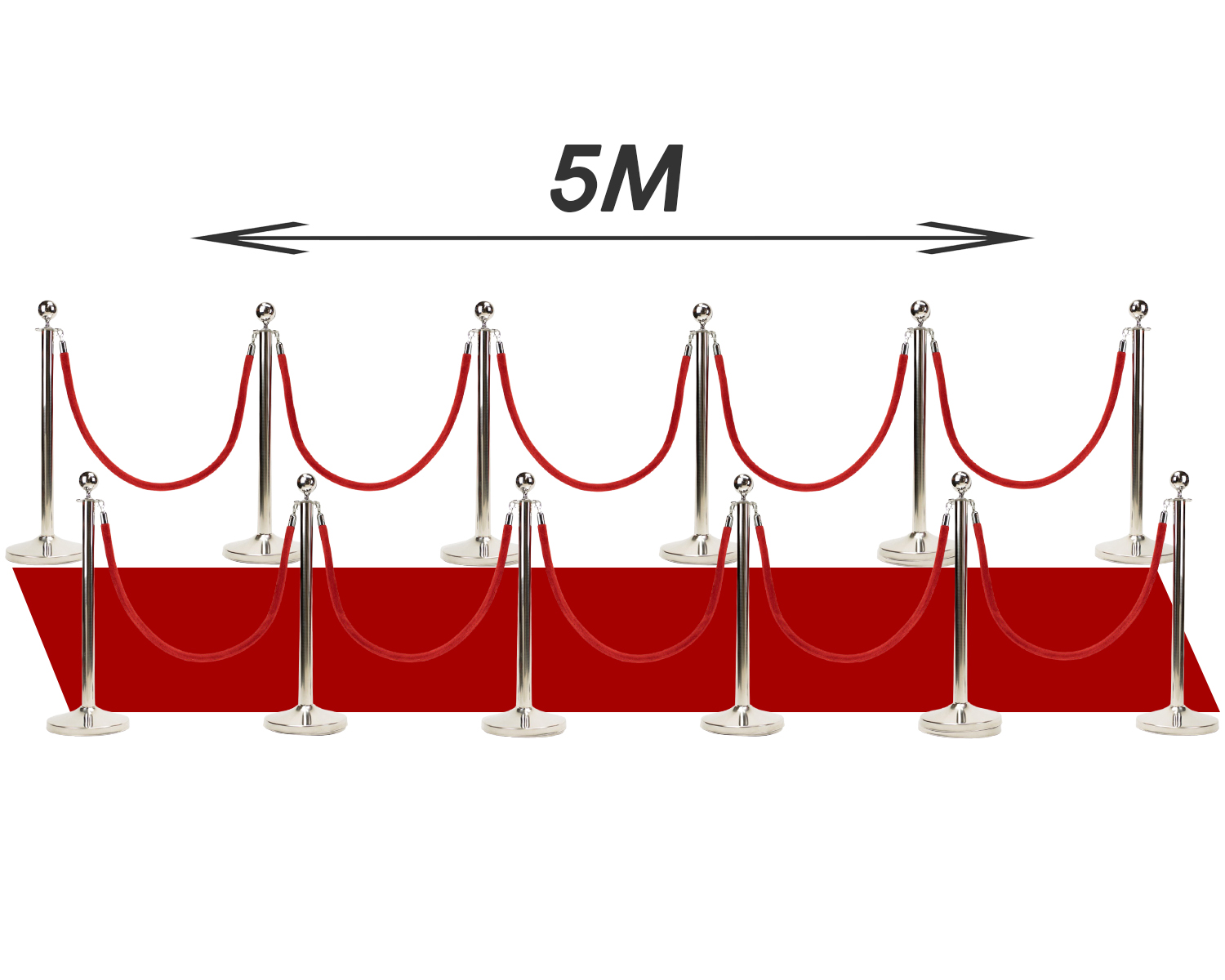 Ons 5 meter afzetpakket in chroom met rood fluwelen koord is de perfecte keuze voor evenementen waar elegantie en organisatie samenkomen. Dit pakket bevat 12 verfijnde afzetpalen en 10 prachtige rood fluwelen koorden, plus een 5 meter lange rode loper om een onvergetelijke entree te creëren.