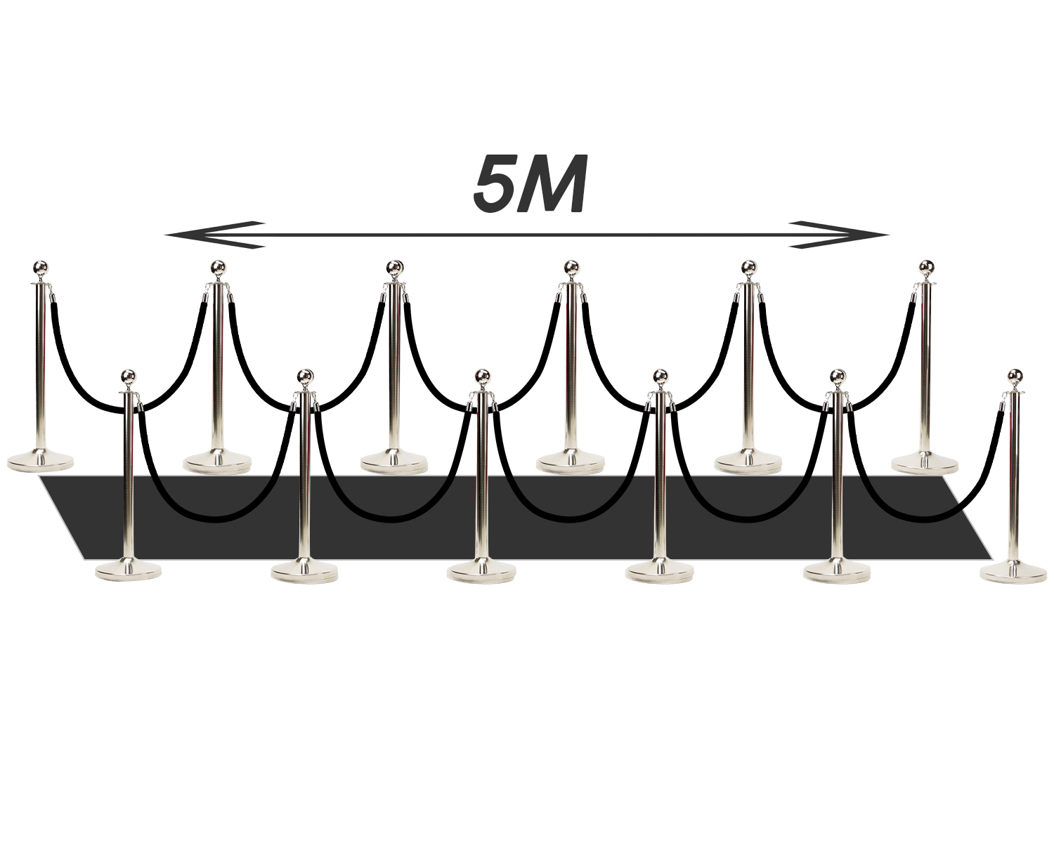 5m Afzetpakket Chrome Zwart incl. zwarte loper