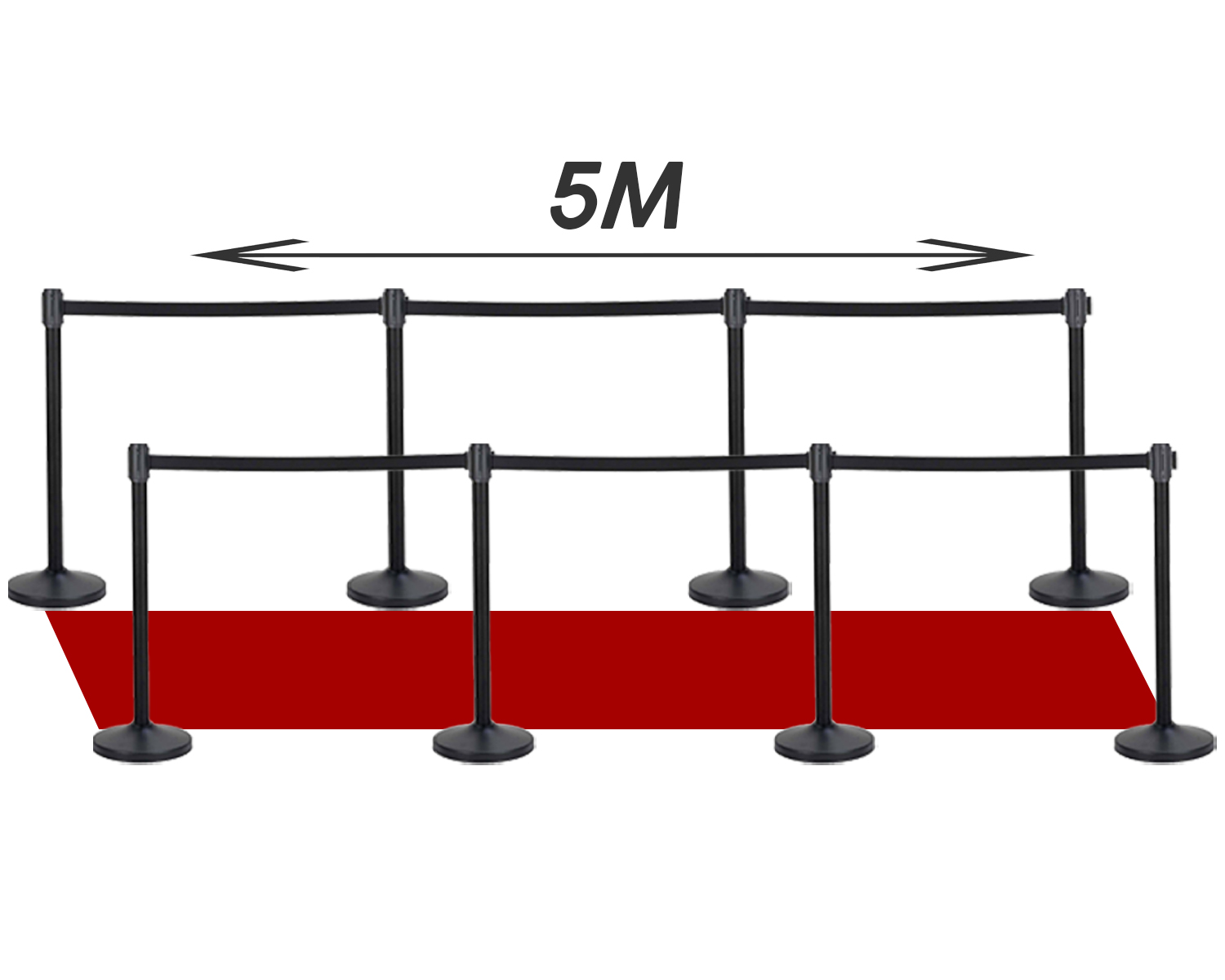 Elegant 5m Afzetpakket met Zwart Uittrekbaar Lint en Rode Loper