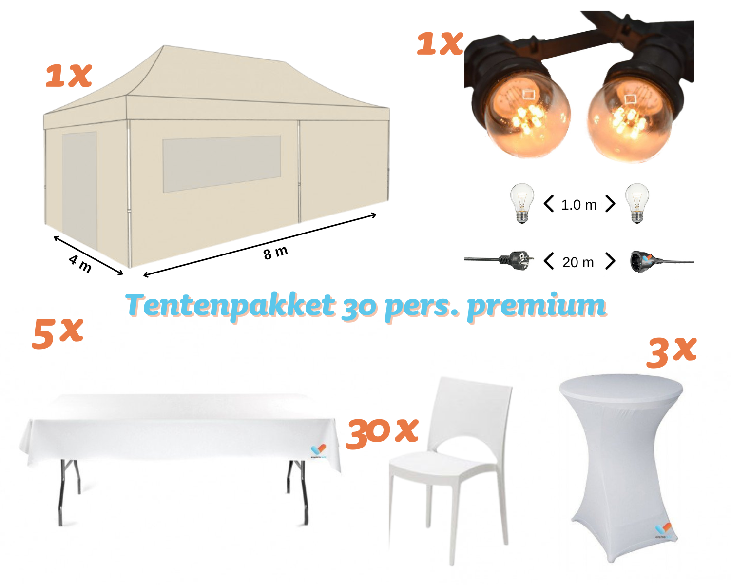 Dit tentenpakket is ideaal voor een middelgroot, mooi tuinfeest.