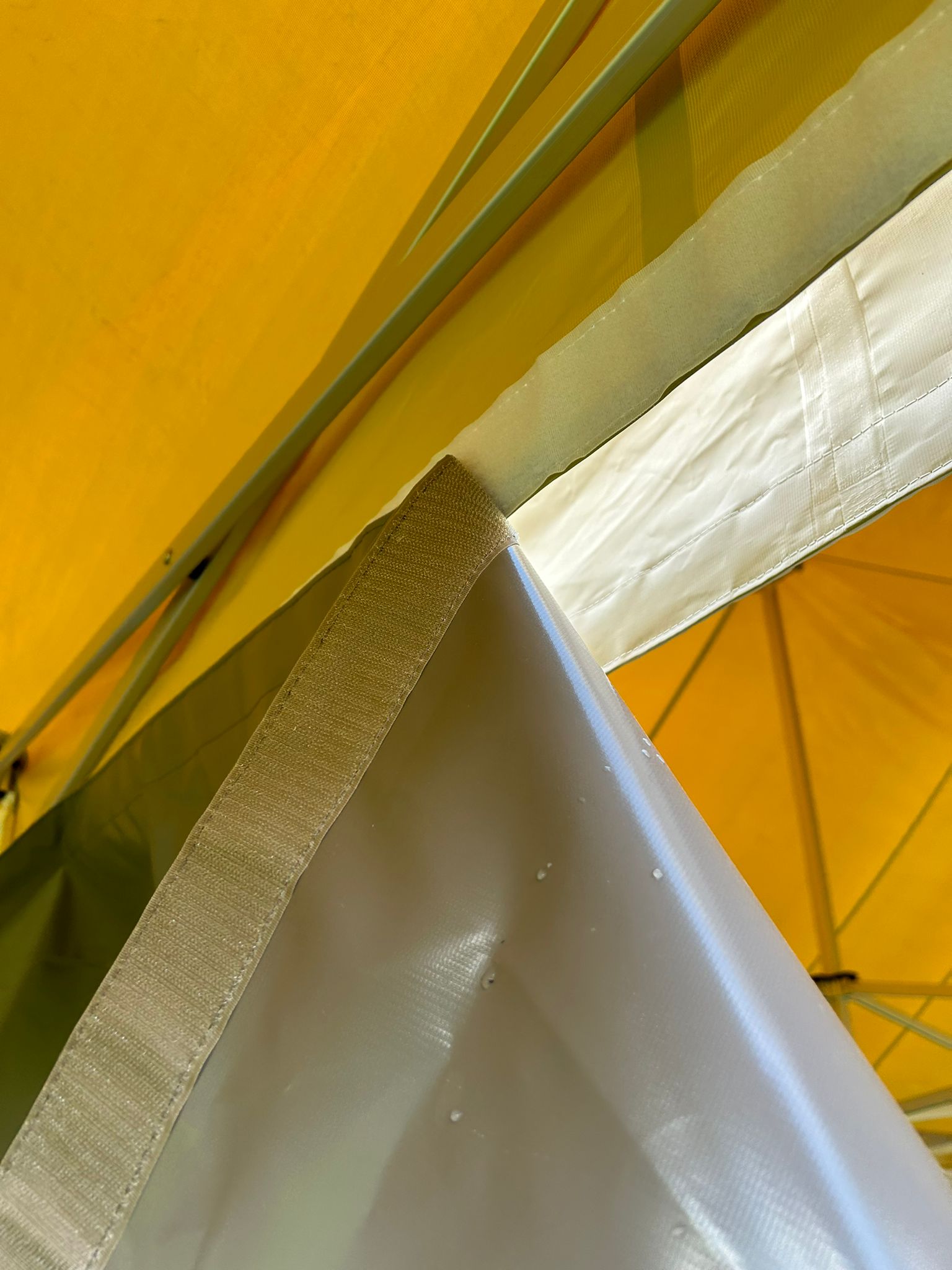 De set heeft 2 koppelstukken zodat aan de 2 poten waar de tenten tegen elkaar staan ze effectief kunnen worden verbonden.